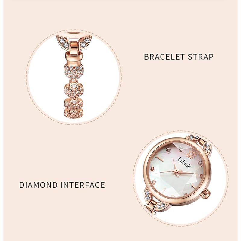 【新品】 腕時計 レディース ブレスレット ダイヤモンド クリスタル かわいい おしゃれ 防水 女性用 うで時計 れでいーす シンプル ブランド プレゼント バングル 小さめ ローズゴールド Watch for Women
