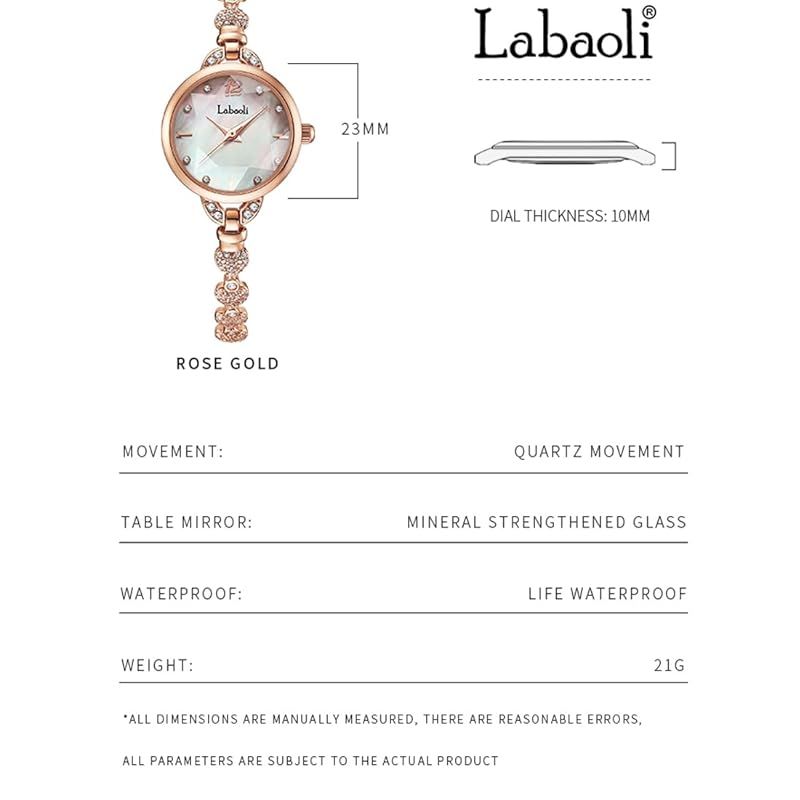 クリスタル 腕時計 レディース バングル 小さめ 時計 ねじ込み式リューズ. ブレスレットはサイズを変更することができ. 自分で簡単に調整できます. LA062 女性用時計:厚さ10MM、直径27MM、スチールバンド幅6mm、長さ210mm, 女性用時計重量28g.