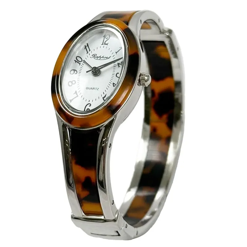 【新品】 [ラポール]腕時計 オーバルバングルウォッチ シルバースリム ブラウン 188231