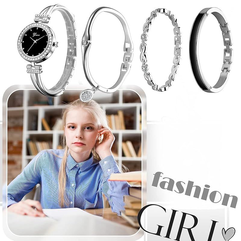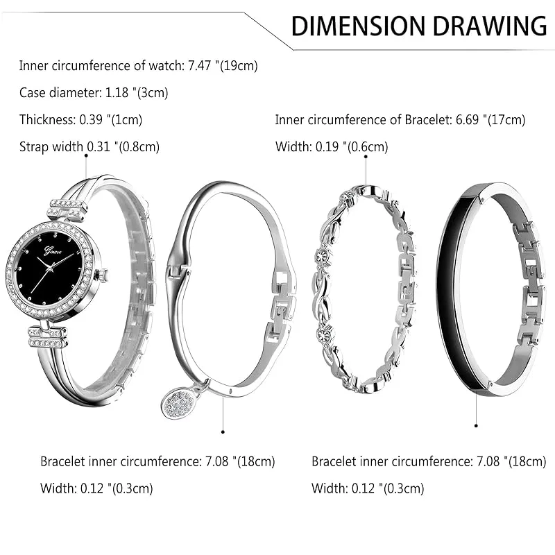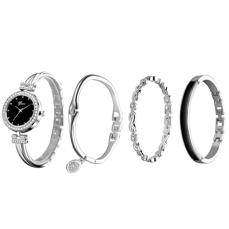 【新品】 [JEWELRYWE] 腕時計 レディース バングル シンプル 可愛い 4点セット アナログ表示 防水 人気 おしゃれ レディースウォッチ シルバー 誕生日 記念日 クリスマス バレンタインデー プレゼント
