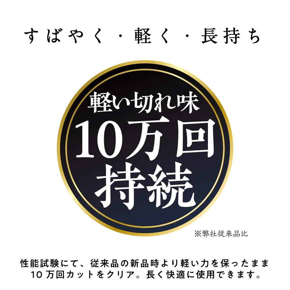 軽い力ですばやく切れる 弊社従来品比約50%軽減×軽い切れ味10万回持続!