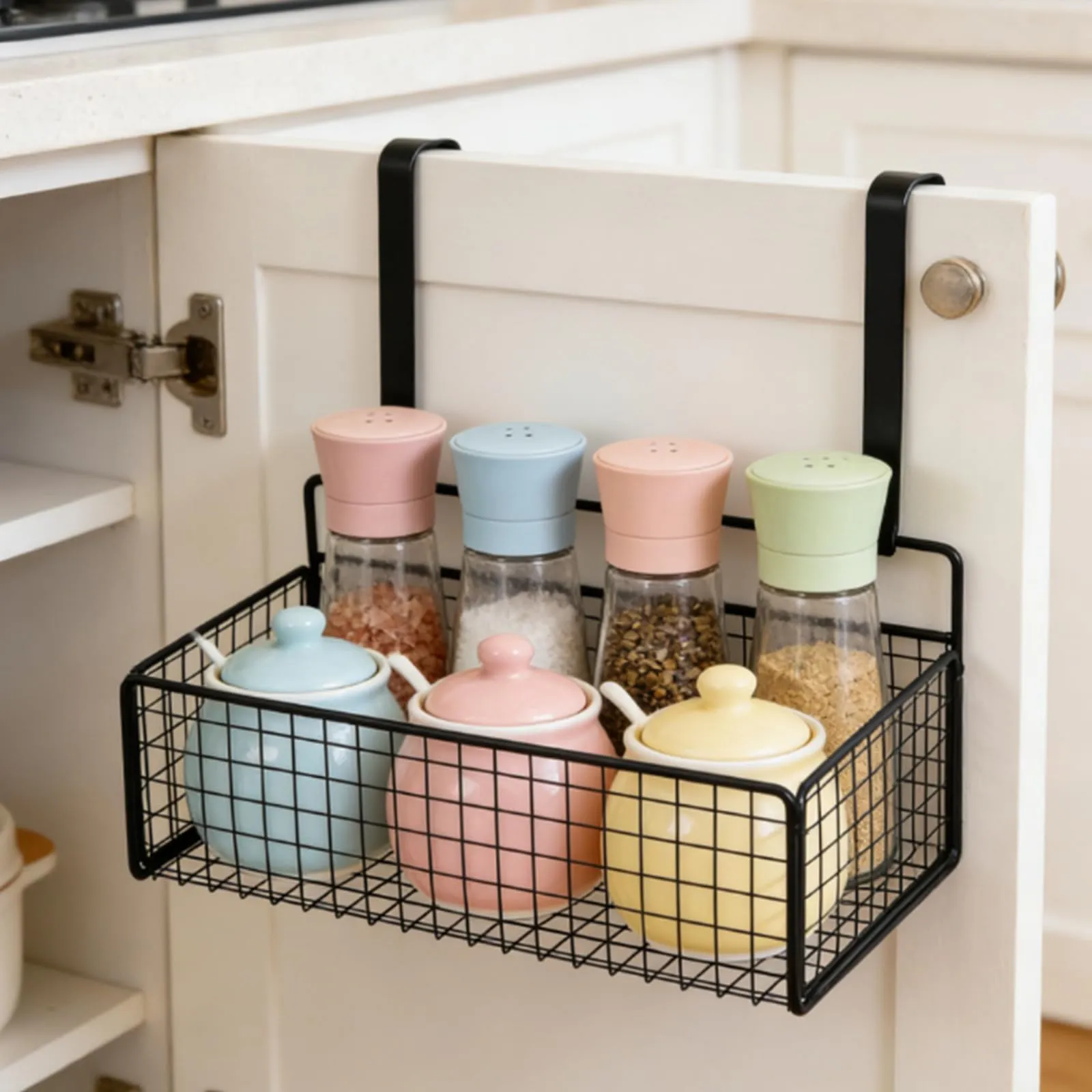 この製品は、キャビネットの扉内に吊り下げて収納できるハンギングバスケットです。工具なしで簡単に設置でき、スペースを有効活用し、収納力を大幅に向上させます。