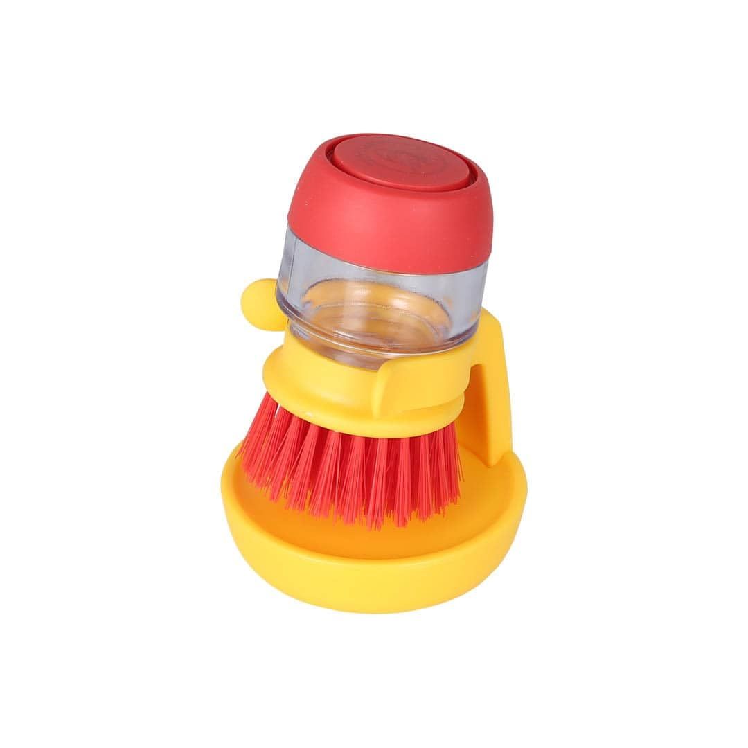 洗剤を入れておける掃除ブラシ。ワンプッシュで洗剤を出しながら、片手で簡単にこすり洗いができます。スタンド付きなので、ブラシを浮かせた状態でキープし、清潔に保ちます。キッチンやバス周りの掃除はもちろん、シャツの襟袖の汚れ落としにも使えて実用的。プッシュボタンからはご機嫌なアヒルがこちらを覗き、洗い物をするあなたを応援しているようです。トイ感のあるカラーリングで、置いておくだけでも気分が上がります。