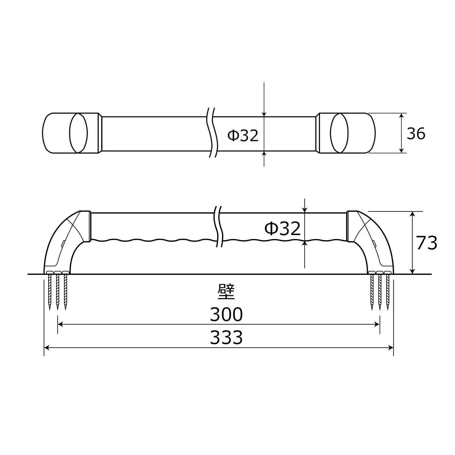 しっかり握れてすべりにくいディンプル形状! ! 縦型手すりに最適です