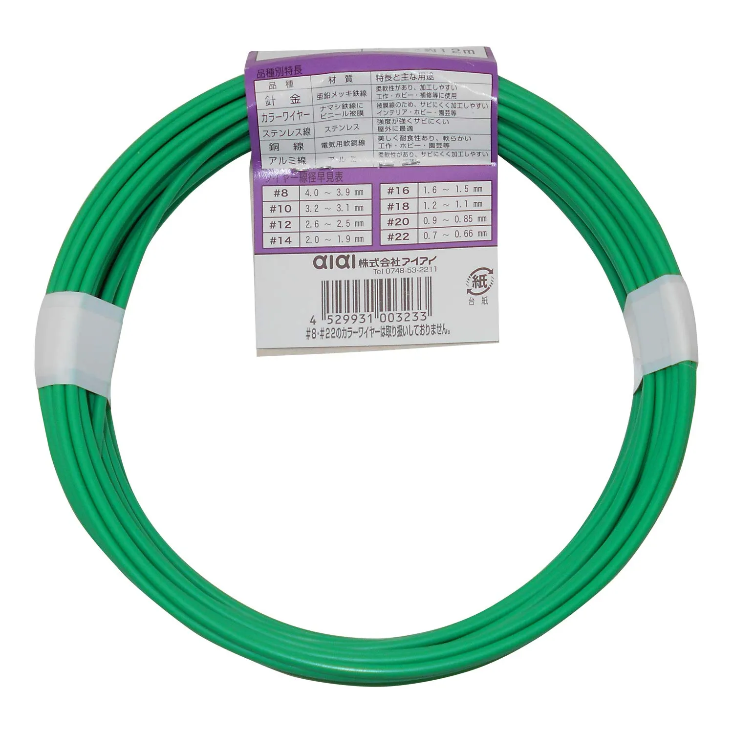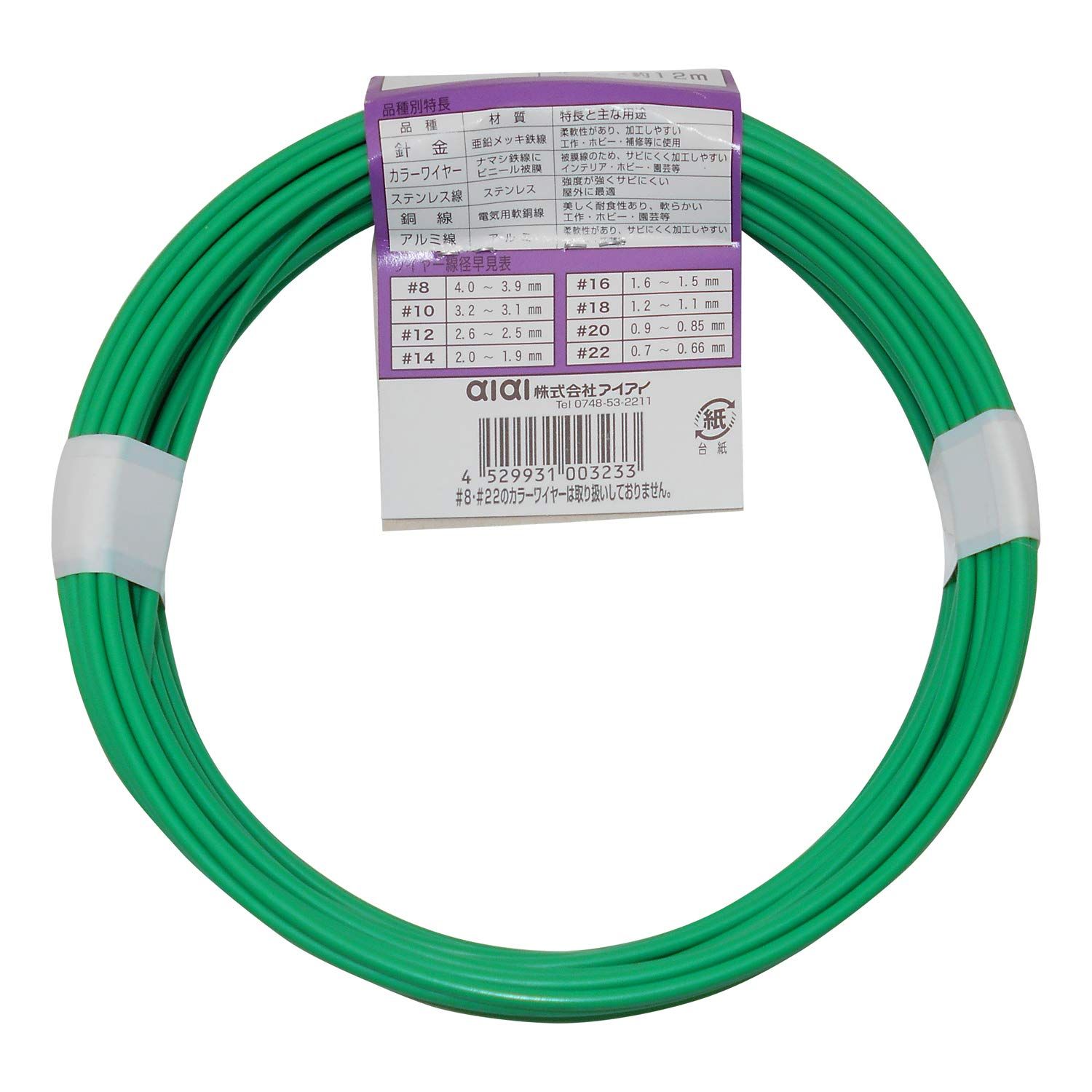 新品 aiai カラーワイヤー 緑 #12X12M IW-323