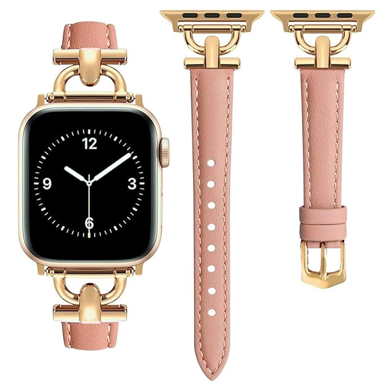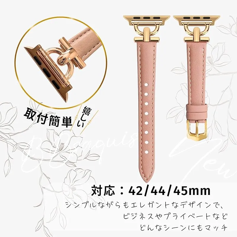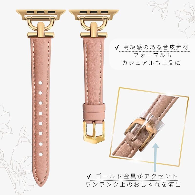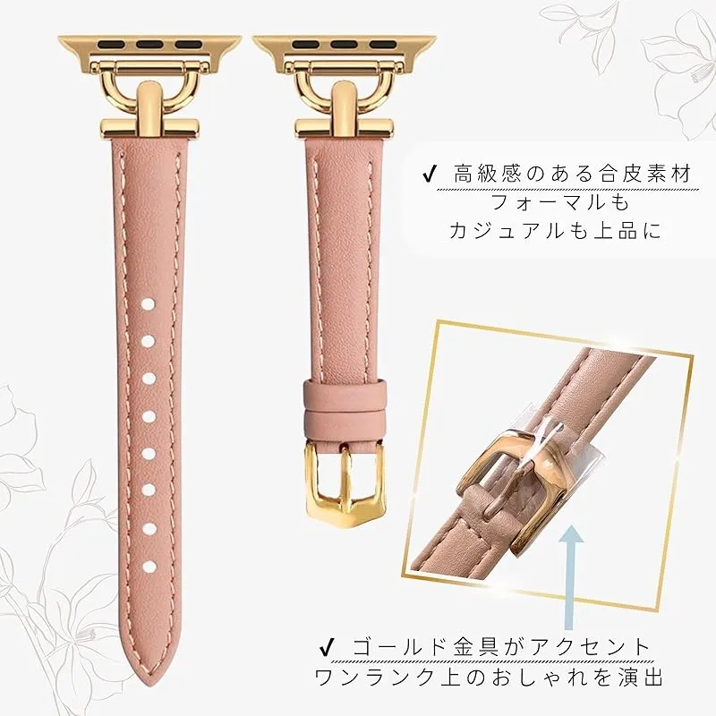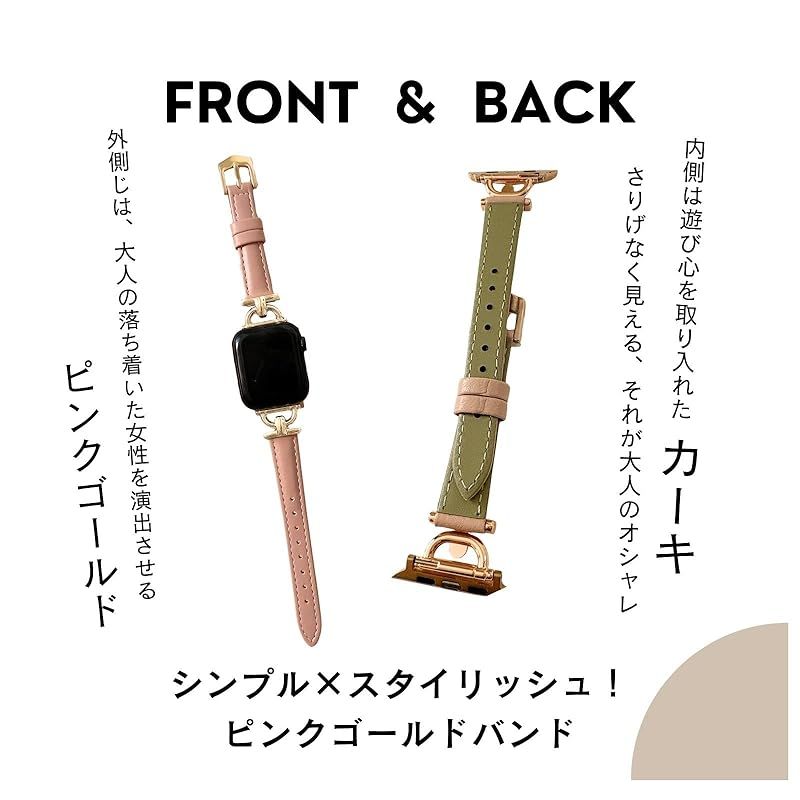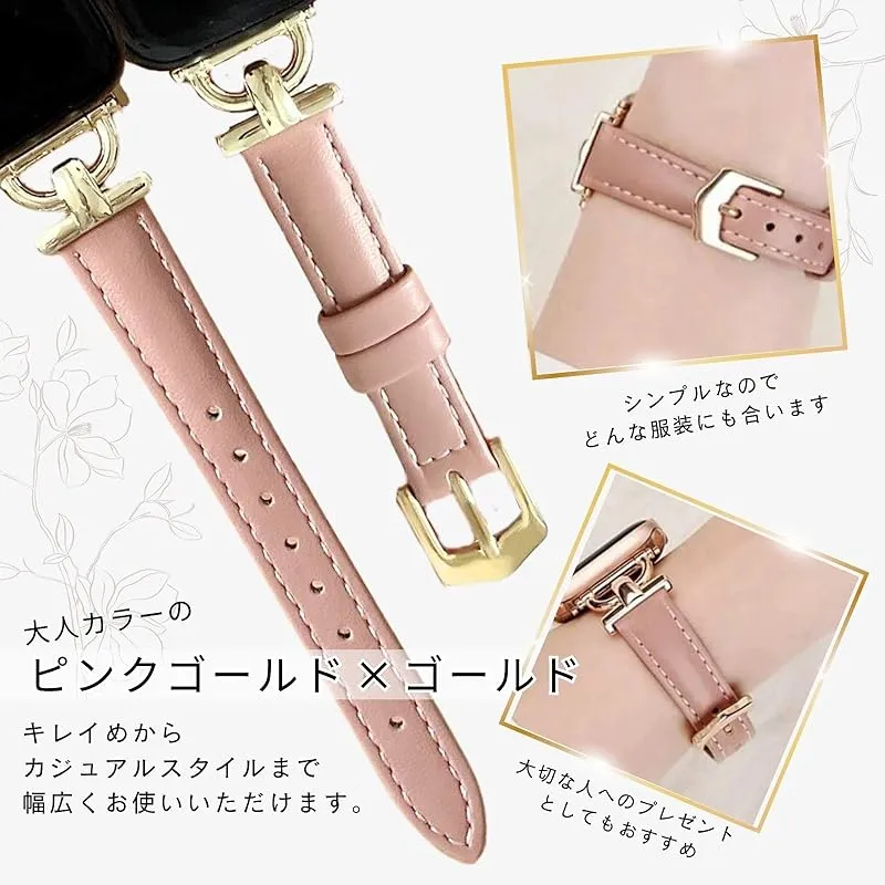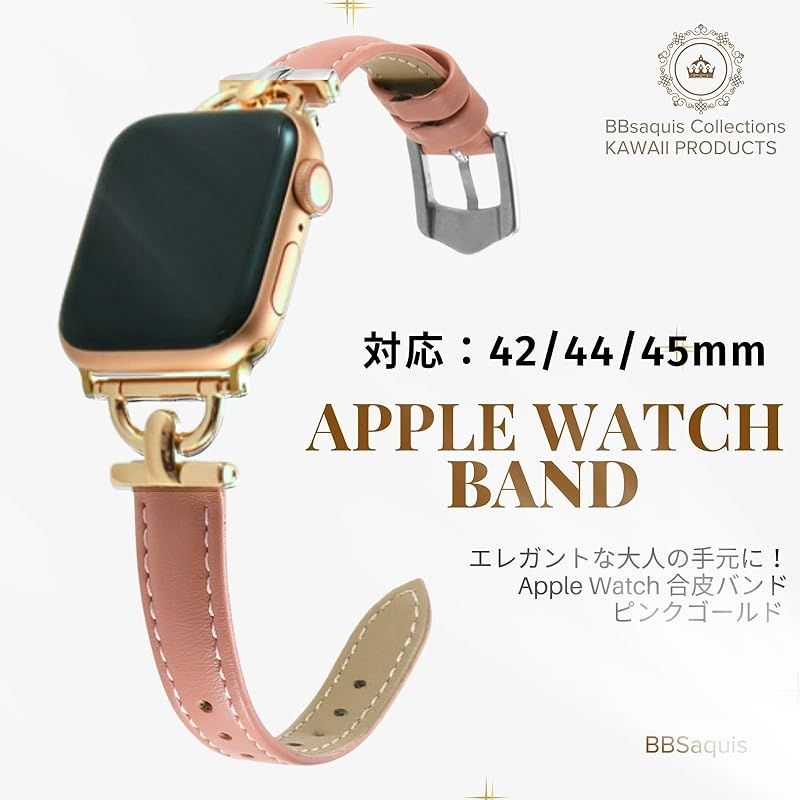 商品名:[BBsaquis] バンド ピンクゴールド AppleWatch アップルウォッチ 合皮 42mm 44mm 45mm スリムレザー製 レディース 女性 iWacth Series 8/7/6/5/4/3/2/1/SE/オシャレベルト (ピンクゴールド、ゴー