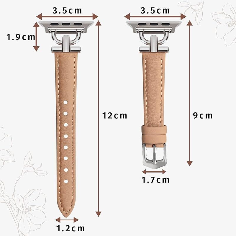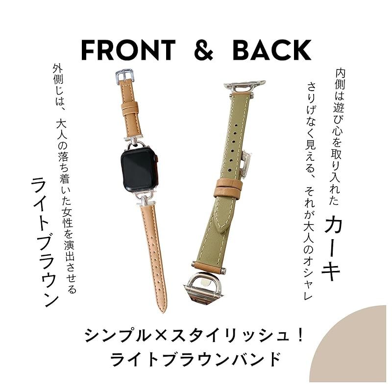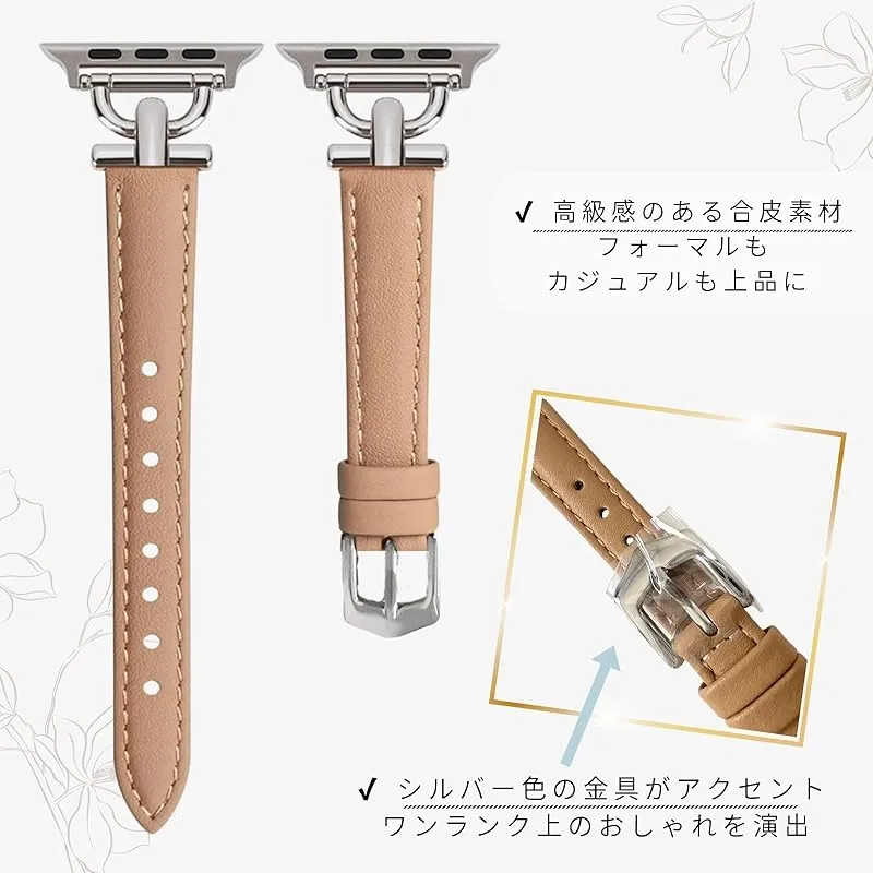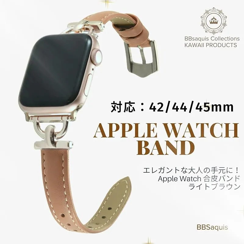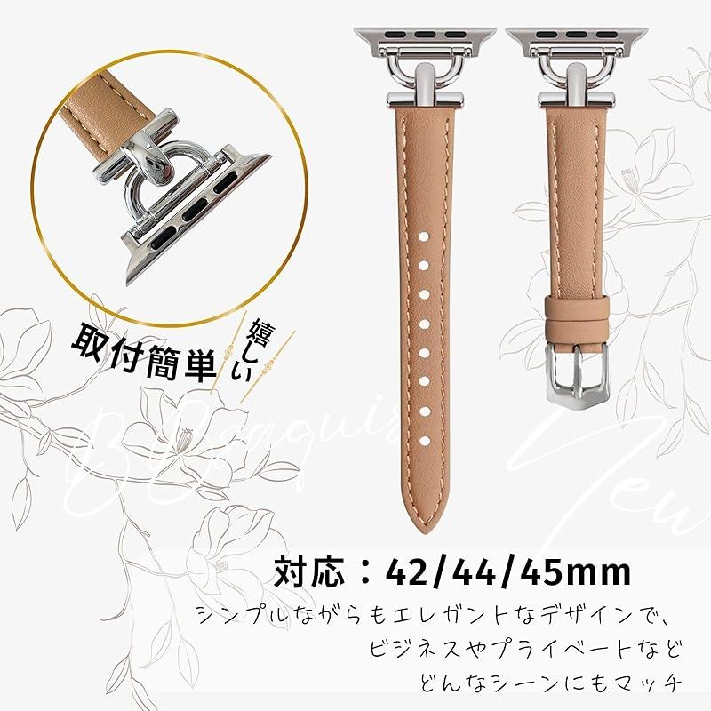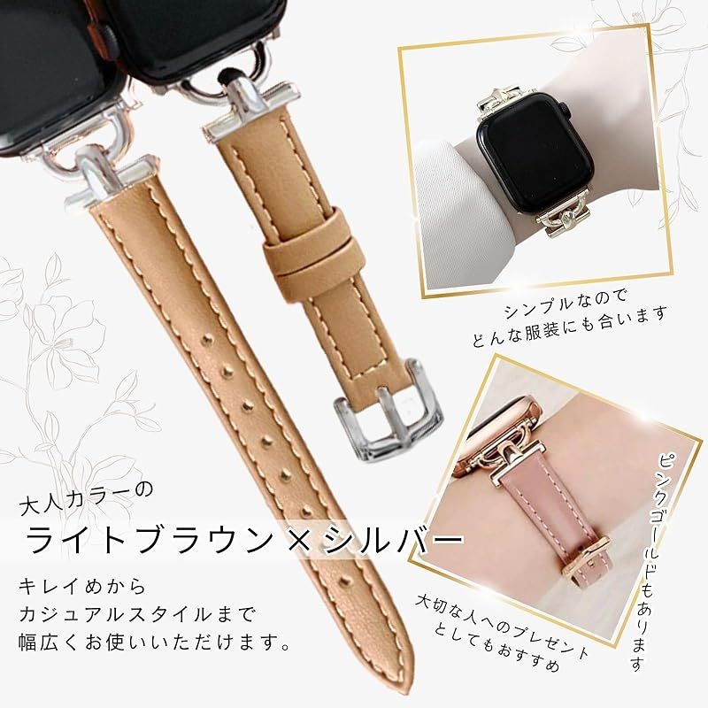 商品名:[BBsaquis] バンド ライトブラウン AppleWatch アップルウォッチ 合皮 42mm 44mm 45mm スリムレザー製 レディース 女性 iWacth Series 8/7/6/5/4/3/2/1/SE/オシャレベルト (ライトブラウン、シル