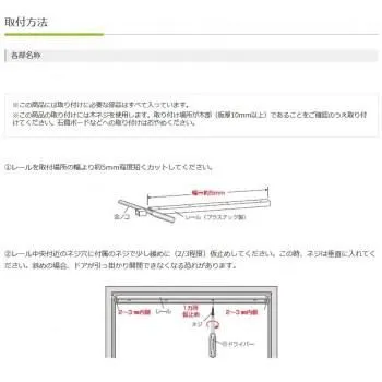 ※取り付けに際しては、付属部品(レール、マグネット受板、木ネジ)等の取扱いには十分お気を付け下さい。