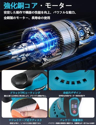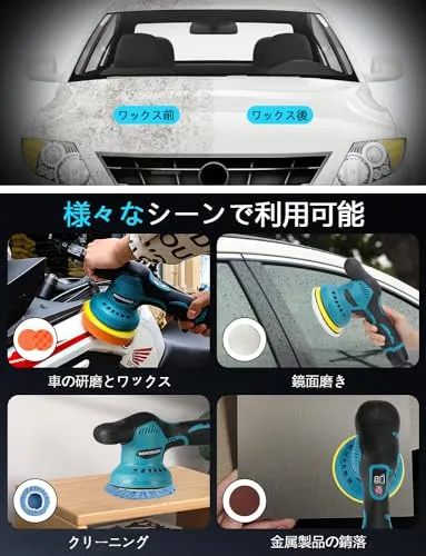多機能ポリッシャー:このダブルアクションポリッシャーは、シングルアクションのものより優れており、12mmの偏心軌道で広範囲を効率よく磨けます。傷のある塗装面を簡単に整え、作業時間を大幅に短縮できます。初心者でもすぐに使いこなせる簡単操作が魅力です。