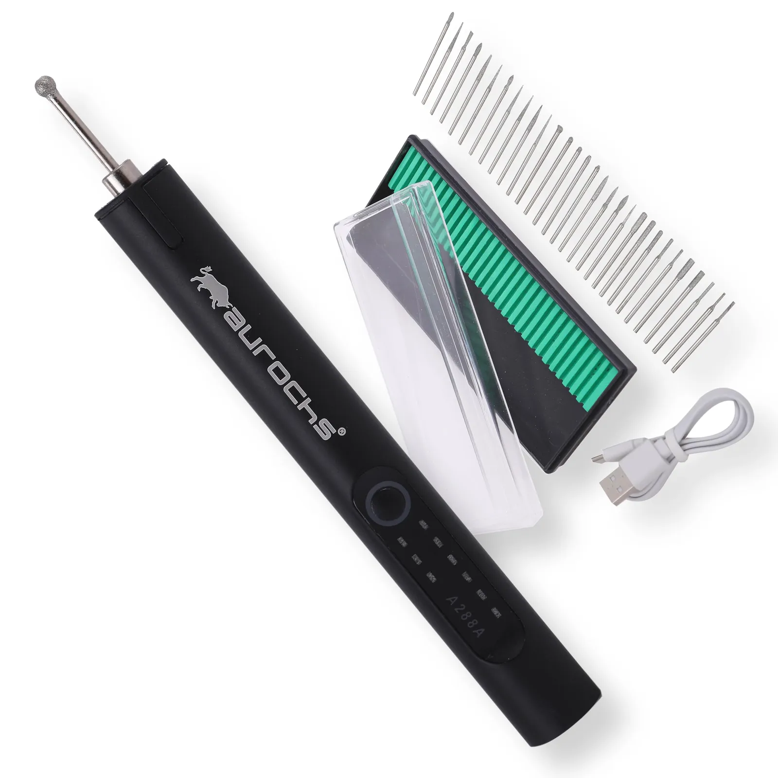 【おてがる】 豊富な付属品ですぐ使える! 30種類の形状豊富な研削ビットが付属。―付属品― 1. ダイヤモンドビットセット 2. TYPE- C充電 ケーブル 3. 日本語説明書