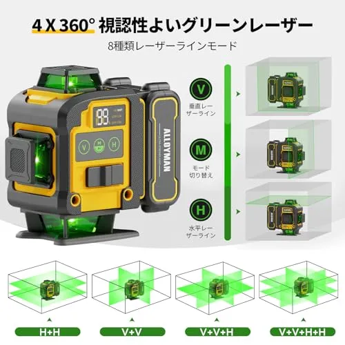 Alloyman レーザー墨出し器 4D フルライン グリーンレーザー 水平器