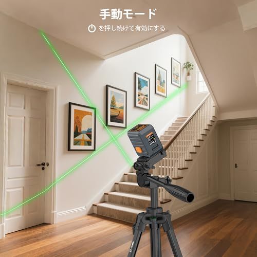 伸縮自在の高品質三脚付き:付属の三脚は3893cmまで調整でき、自由な高さ設定が可能です。上下可動の雲台と角度調整機能により、精密な位置合わせが簡単に行えます。安定性が高く、DIY作業から本格的な室内施工まで幅広く活躍します。レーザークラスIIの安全基準に準拠し、出力は1mW未満。