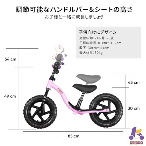 【早期学習用 ペダルなし自転車】小さな幼児に自転車の楽しさを紹介するこの子供自転車は、24ヶ月~5歳の子供に最適です。屋外で押したり、立ったり、歩いたりしながら、バランス感覚を養い、頑丈なフレームとバランスの取れ、子供に優しいデザインを提供します。楽しく自転車の基本知識を学べます。