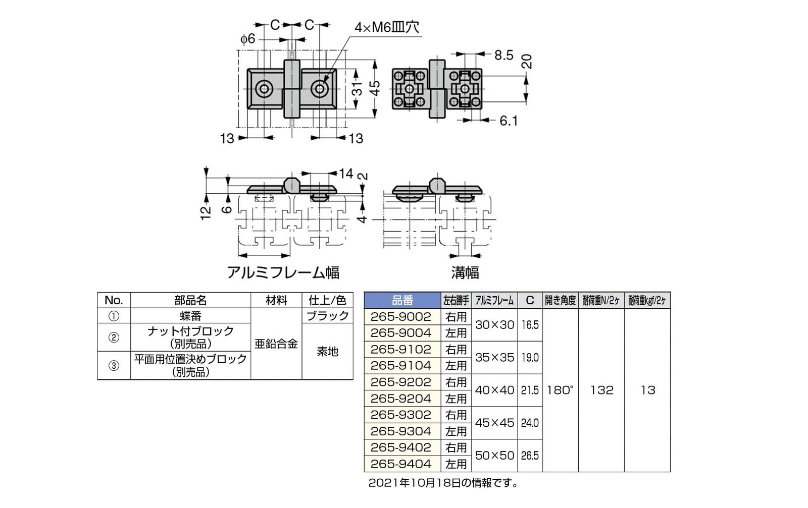 ・種類:抜き差し蝶番