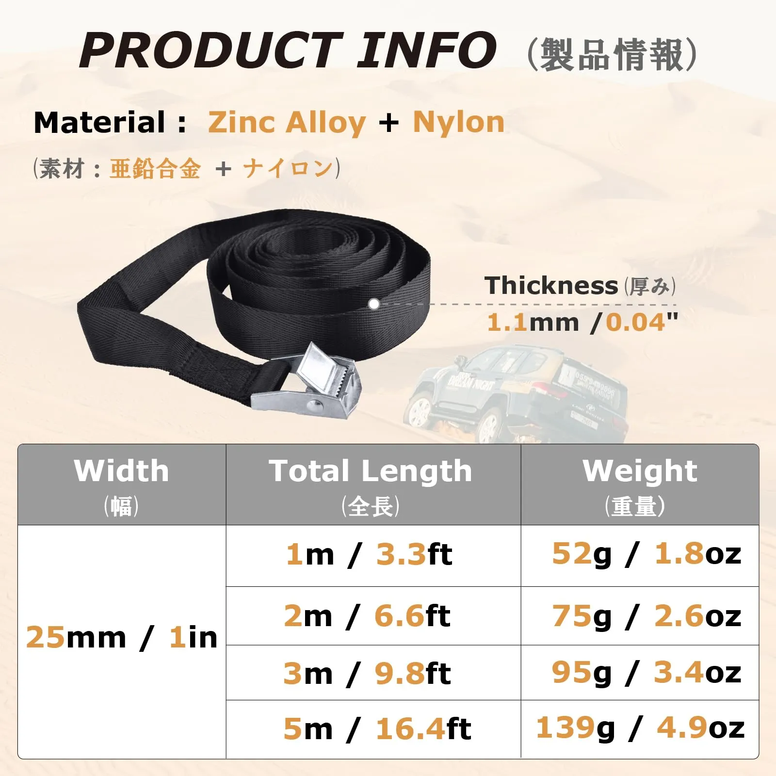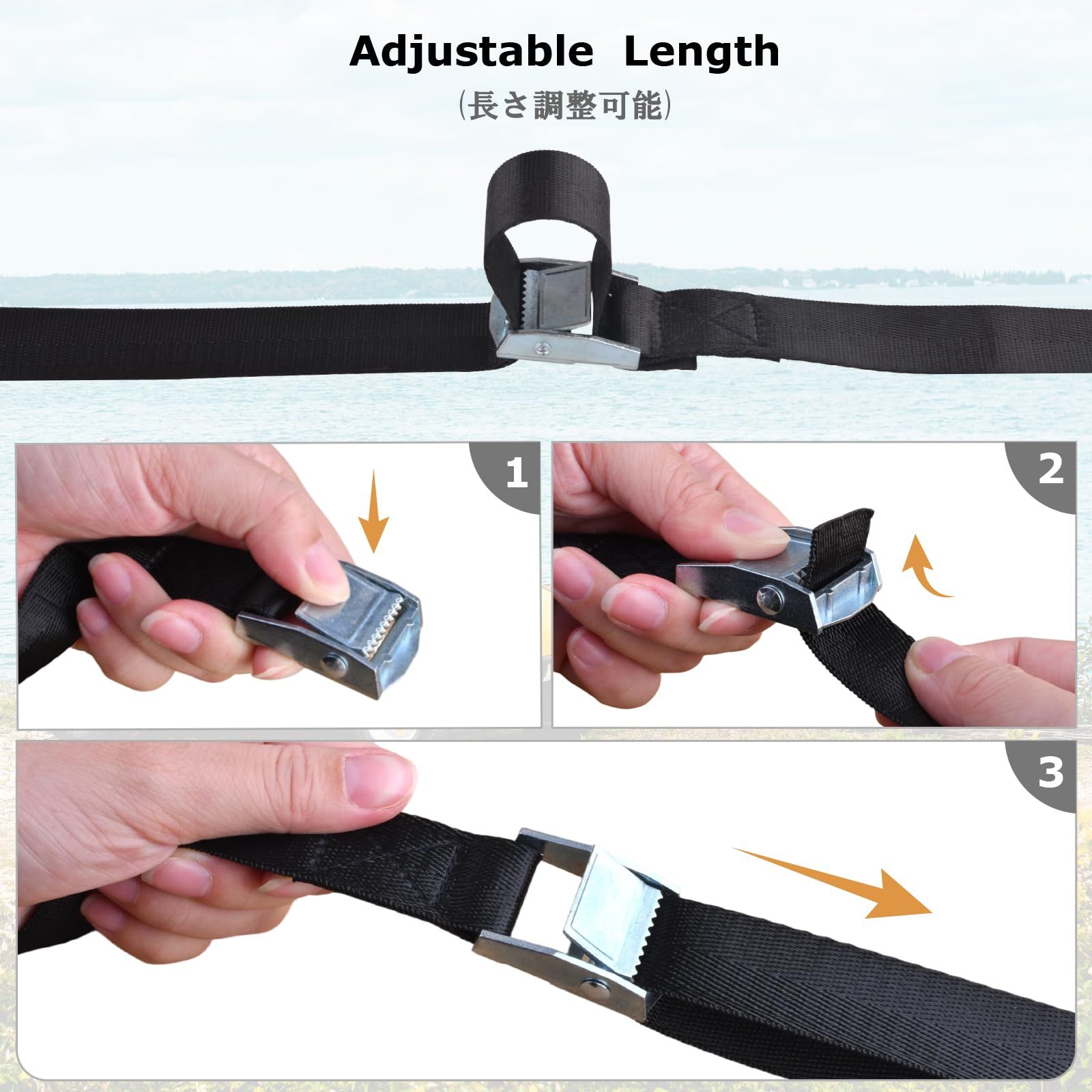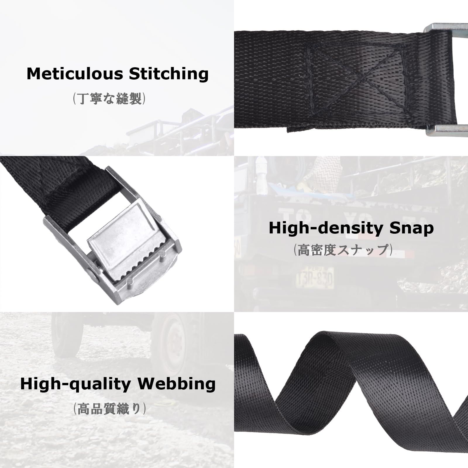 【製品材質】荷締めベルトはポリプロピレン生地を使っていて、耐摩耗性が優れています。メッキ加工した亜鉛合金のバックルは頑丈で耐久です