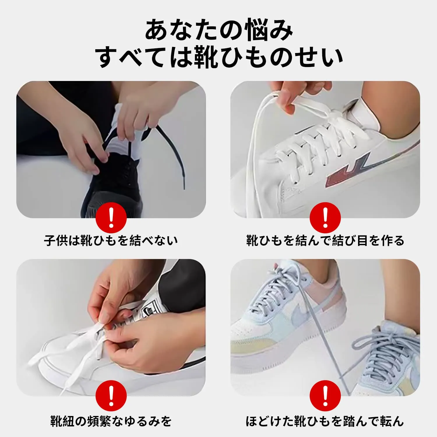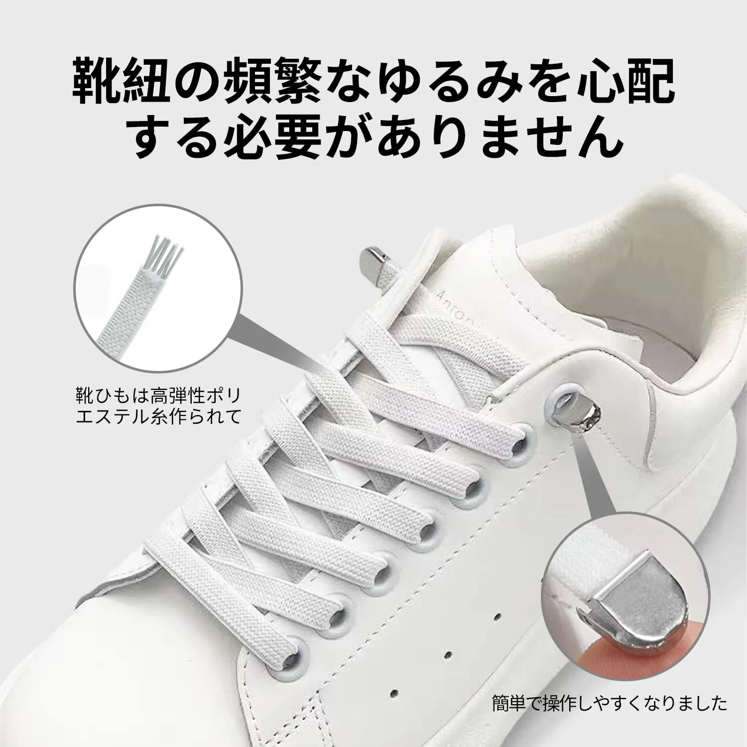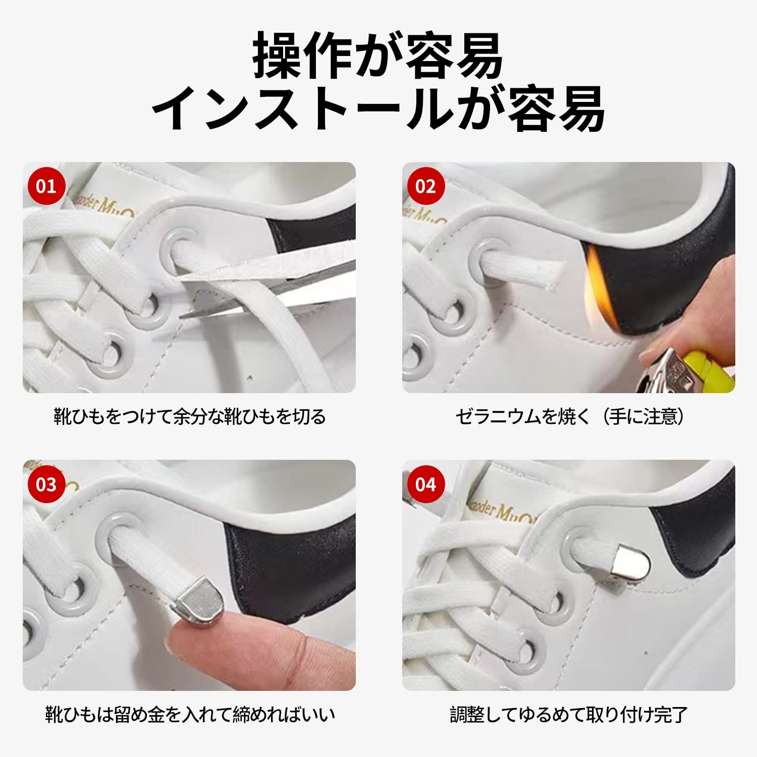 【あなたの時間を節約する】紐止め金具を使用するので、靴紐を解けなくてすぐに脱ぎ履きの快感を感じます。また、歩いている時、ほどけた靴ひもを踏んで転んでしまうリスクも軽減できます。本商品は一回取り付けてた後、頻繁に留め具を取り外す必要はないです。取り付けした後、直接靴を脱ぎ履きできます。