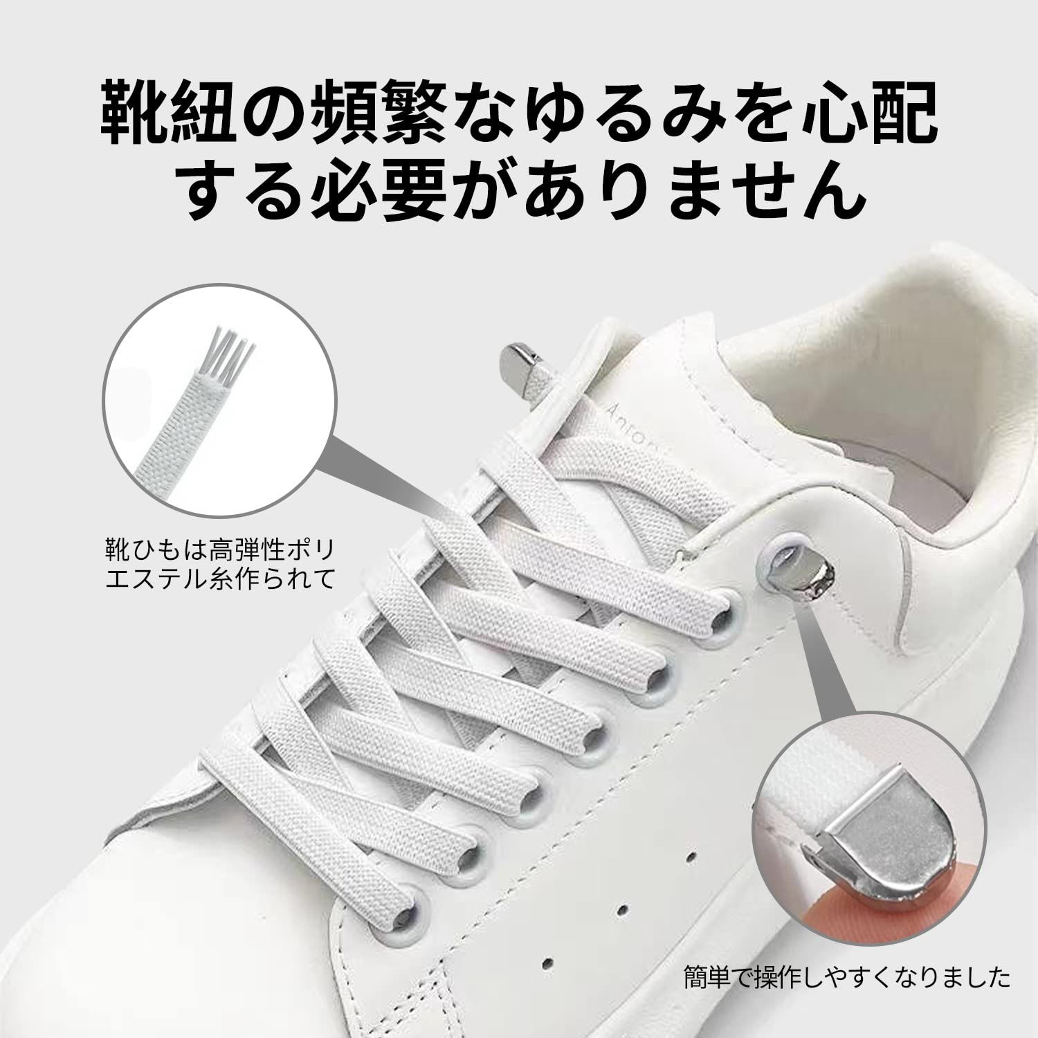 【適用靴型】靴ひもは、スニーカーやカジュアルシューズなど、あらゆるタイプの靴に適しています。靴ひもはほどける心配がなく安心!靴ひもがお子様や体の不自由な方、高齢者の方に、また頻繁に脱ぎ履きする作業靴などに最適です。独自のロックシステムにより、靴紐の頻繁なゆるみを心配する必要がありません。