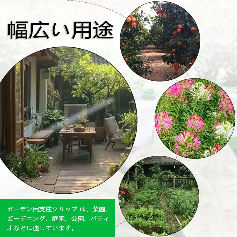 1. 高品質素材:耐久性に優れた素材を使用しており、長期間の使用に耐えます。こちらの支柱クリップは、家庭菜園やガーデニングを楽しむ方にぴったりのアイテムです。