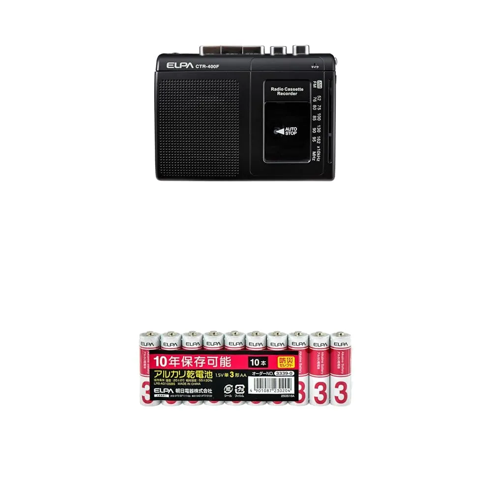 セット電池内容: 単3形アルカリ乾電池、10本パック。
