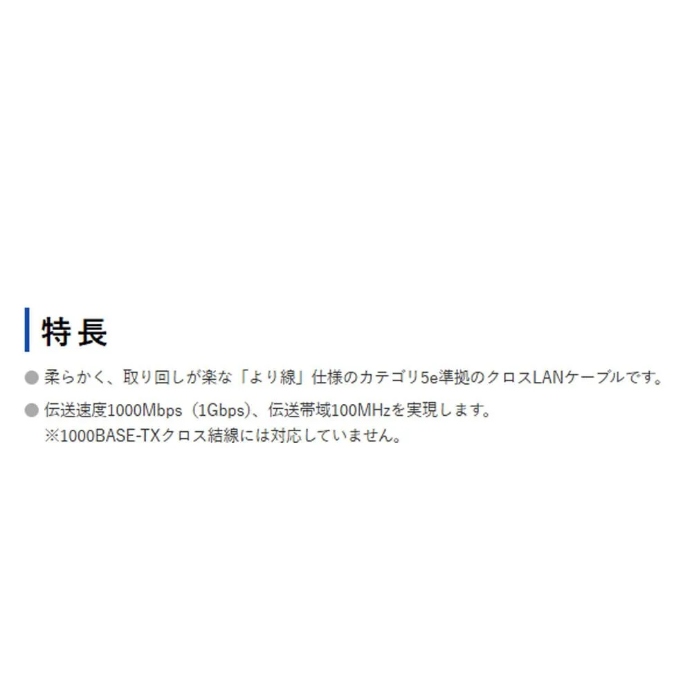 ●柔らかく、取り回しが楽な「より線」仕様のエンハンスドカテゴリ5準拠のクロスLANケーブルです。