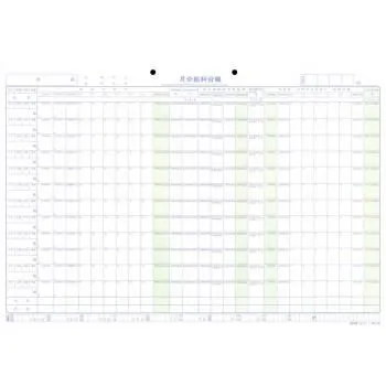 1回の記入で、給料台帳・給料明細書・賃金台帳・源泉徴収簿貼付シートが一度に作成できます(ヨコ型ヨコ書き、13名連記、手当欄8、控除欄4)。別売りの給与F-2とセットでご利用ください。