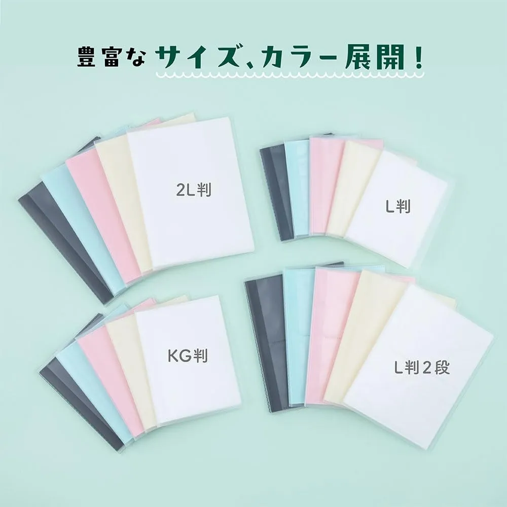 クリアな表紙とカラーの台紙がキレイな、カラーポケットアルバム。シンプルで使い勝手のよいアルバムです。
