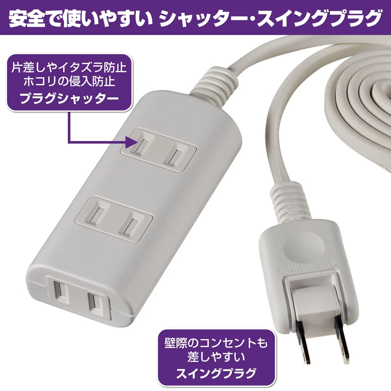 ●180°回転プラグ。耐トラッキングカバー付。