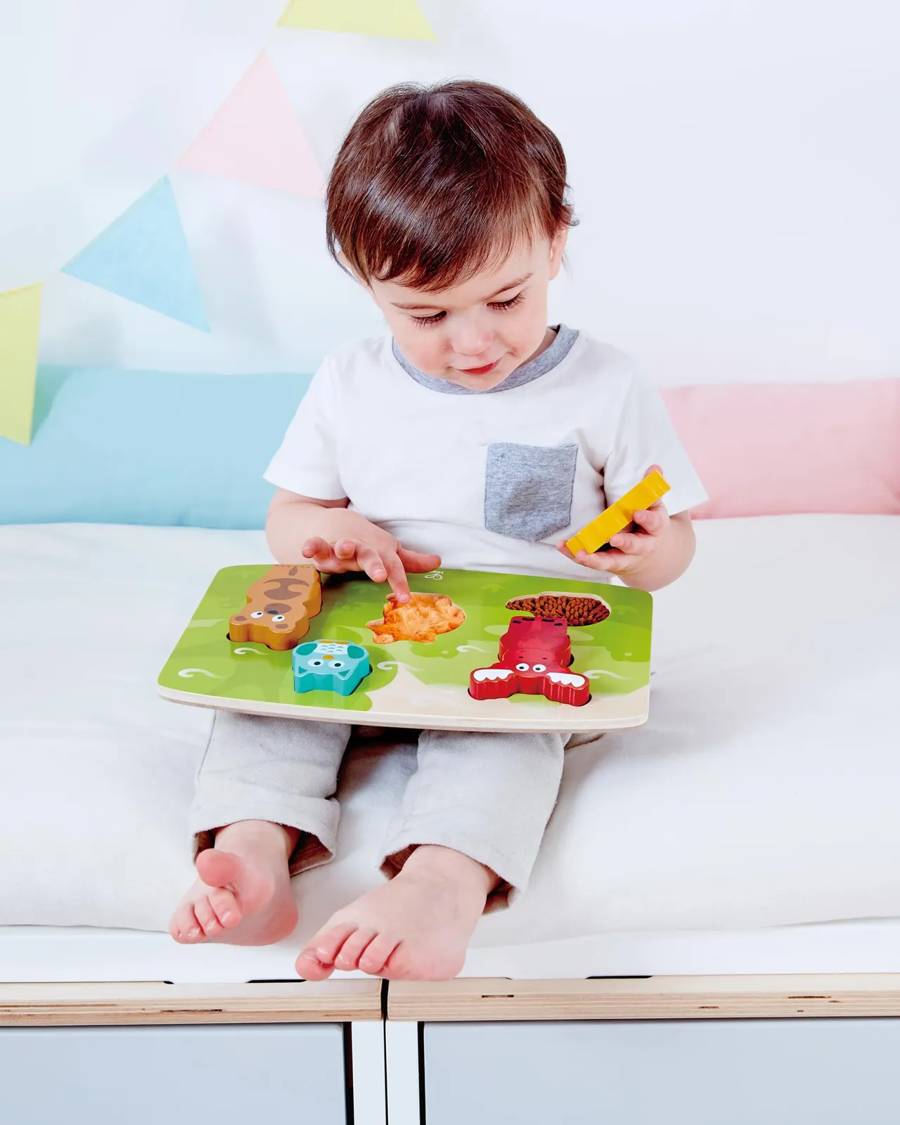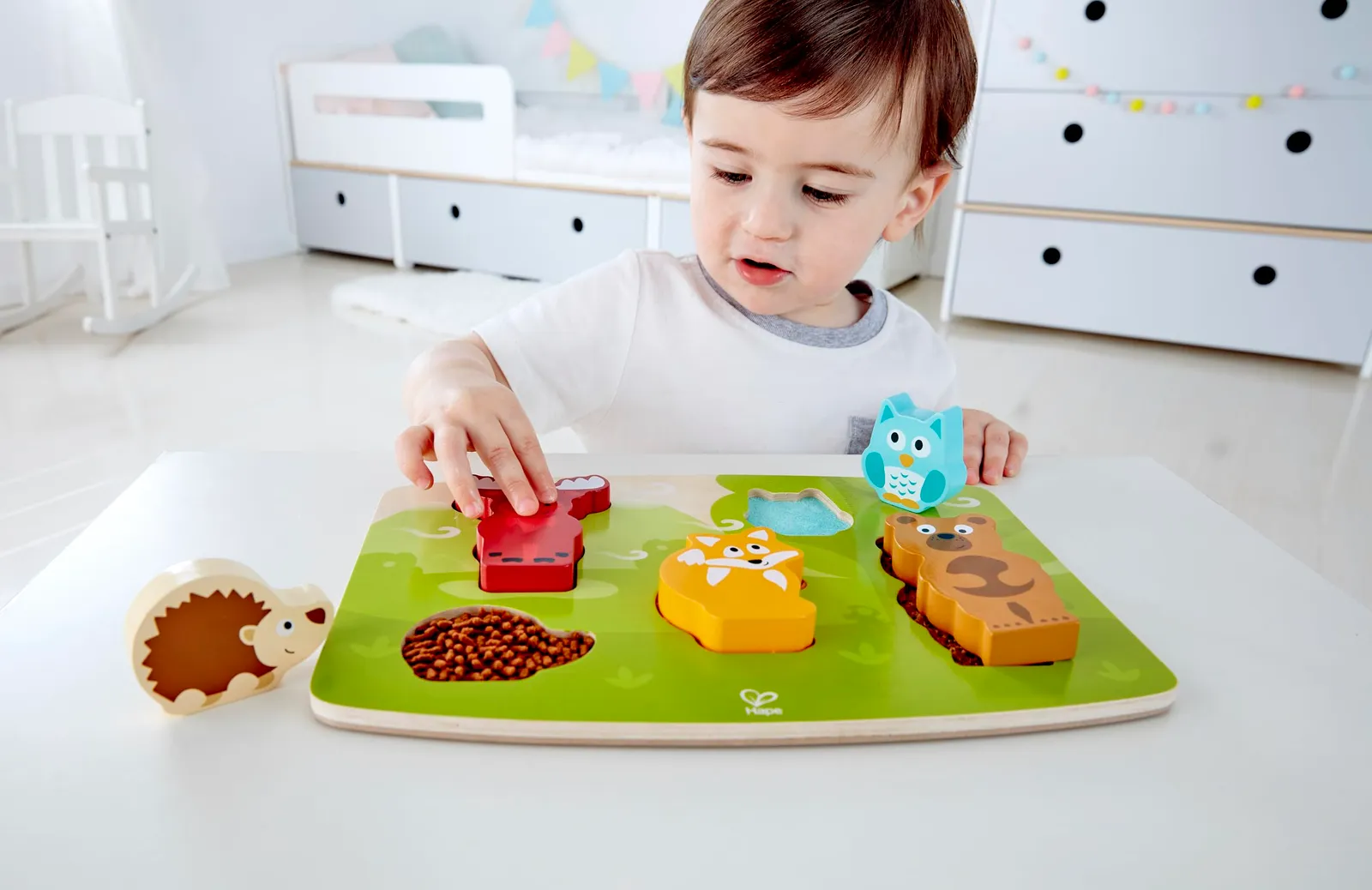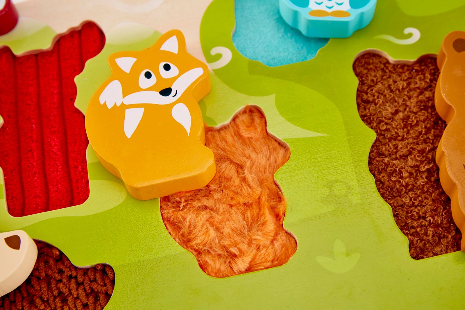 様々な感触を楽しめる、森のどうぶつのパズルです。