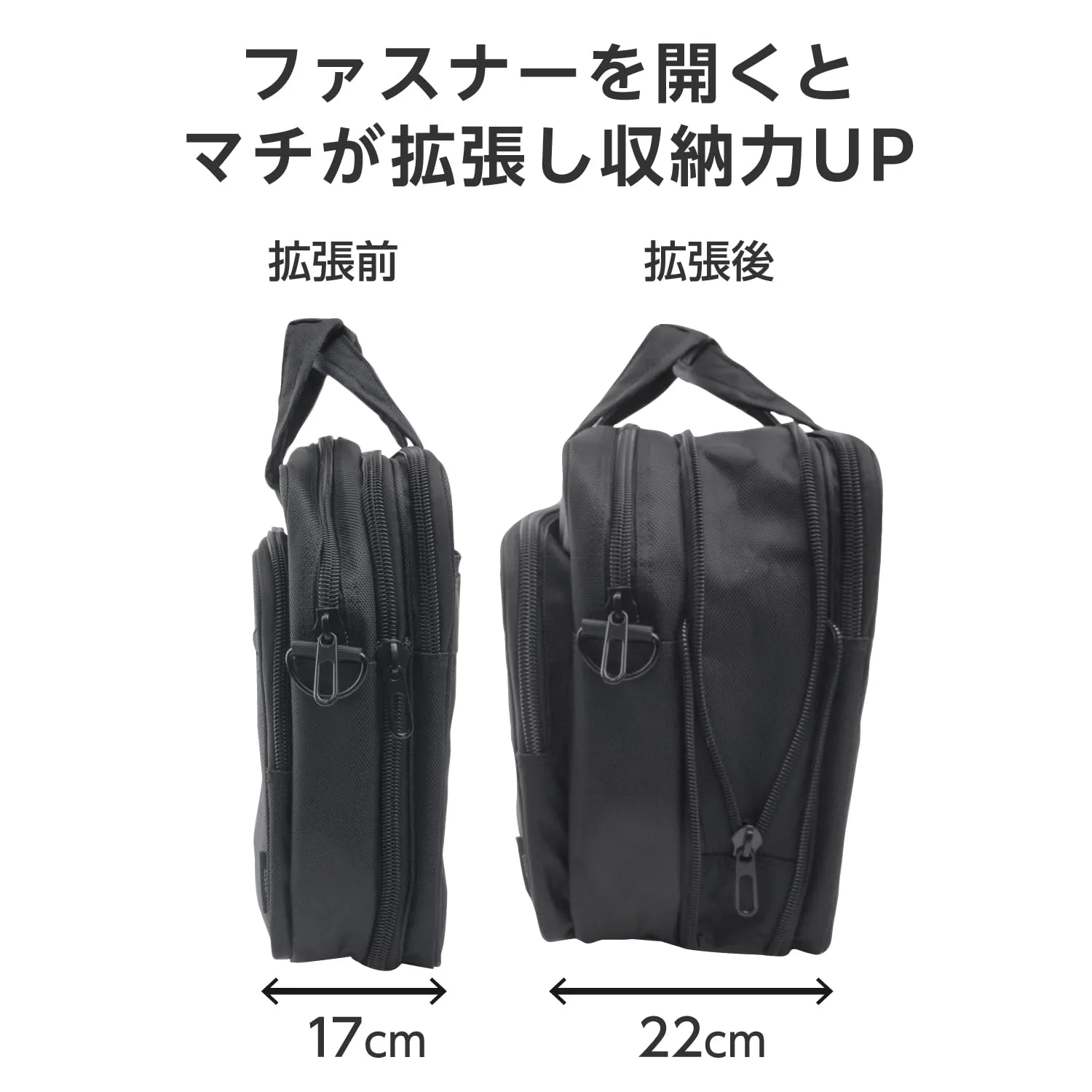 約5cmほどマチを拡張できるビジネスバッグです。