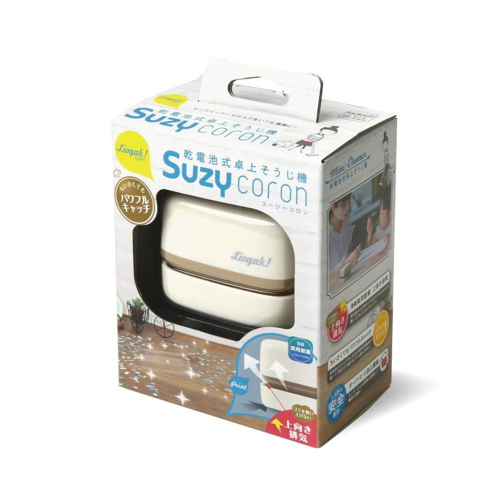 【机の上がサッとカンタンにキレイに! 乾電池式の卓上そうじ機】 上向き排気で小さなゴミを巻き上げずパワフルキャッチ! 大好評のスージーがさらにコンパクトに。デスクに置いたままでもかわいいサイズ感。 乾電池式のコードレスなので、場所を選ばず使用することができます。 オーバーヒート防止機能付。モーターによる発熱を感知して電源を遮断します。 開閉ボタン付きでゴミ捨てカンタン。 上部についた電源スイッチで、カンタンON/OFF 登録実用新案 ※単4乾電池(別売)2本使用