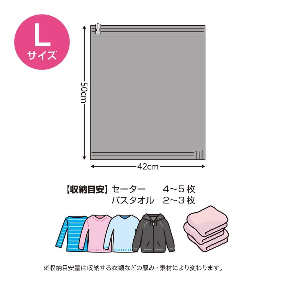 押すだけで簡単に使用できる圧縮袋です。荷物が多くなりがちな旅行やアウトドア、ご自宅での衣類の整理にもおすすめです。