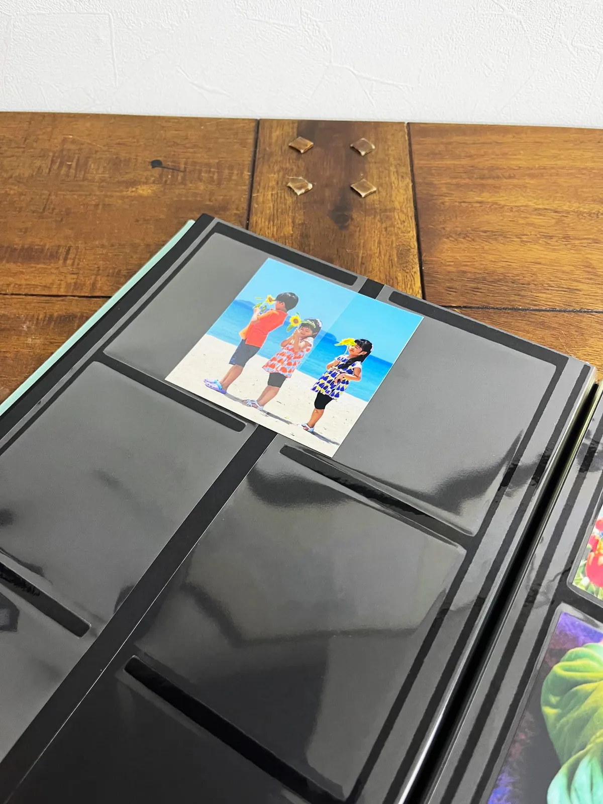 ましかく写真(89×89mm)対応の黒台紙ポケットアルバムです。