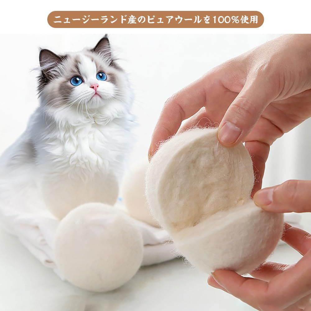 【素材】ニュージーランド産のピュアウールを100%使用。着色料や化学添加物は一切不使用で、猫が噛んでも安全なこだわり素材です。