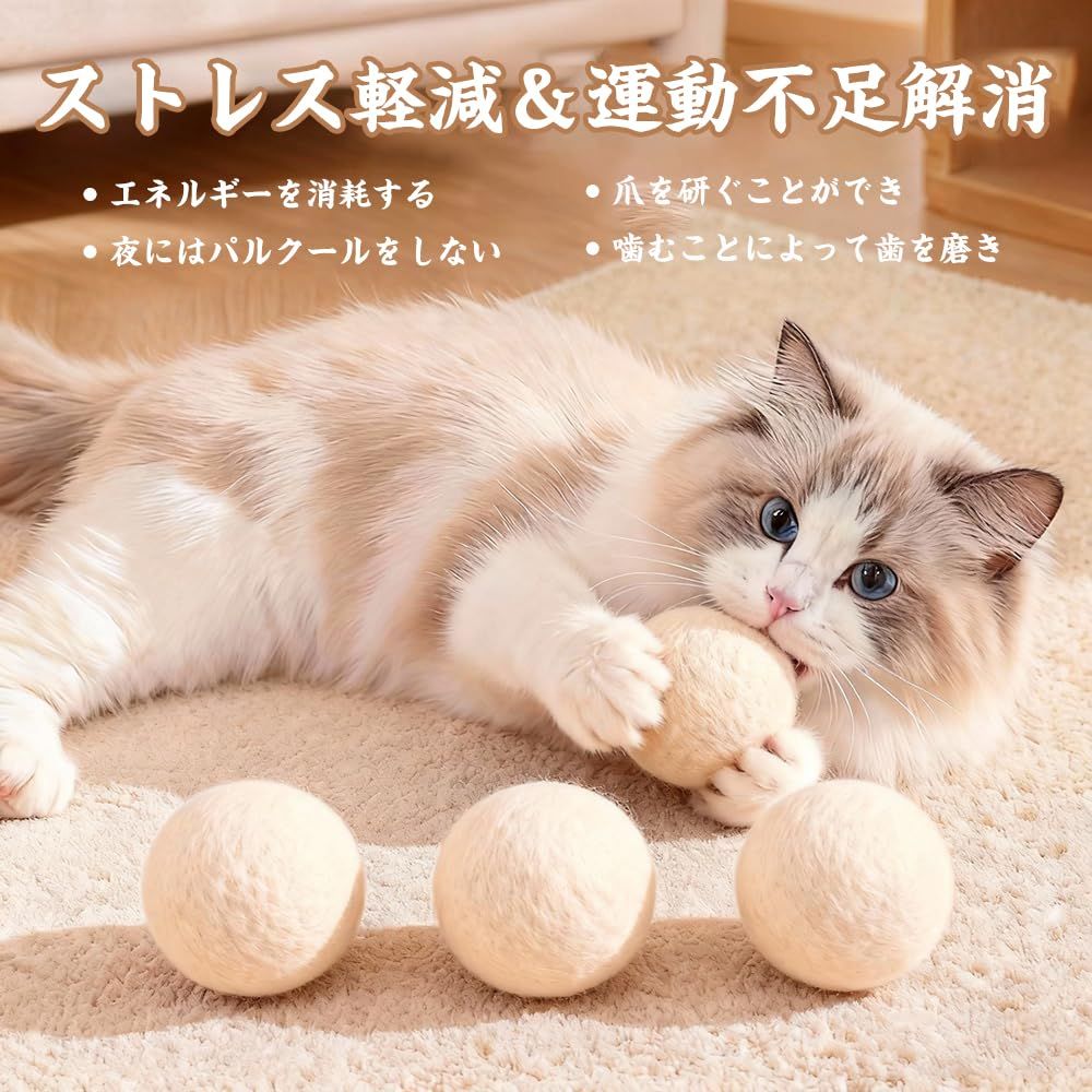 【静音設計で安心して遊べる】ウール特有の静音性により、夜間でも周囲に迷惑をかけずに猫がストレスを発散できます。静かな遊び時間を提供します。