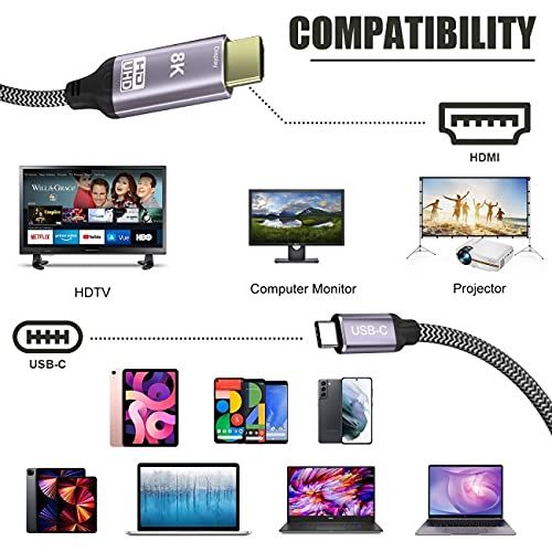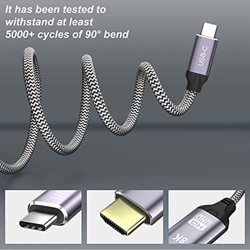 金メッキされたUSB-C-hdmiモニターケーブルビデオ8K、4K UHD 2160p、HD 1080p、コネクター、錫メッキ銅線、耐久性のあるナイロン編組、アルミニウムスリムケース、これらすべてがデバイス間の強力な接続をします。