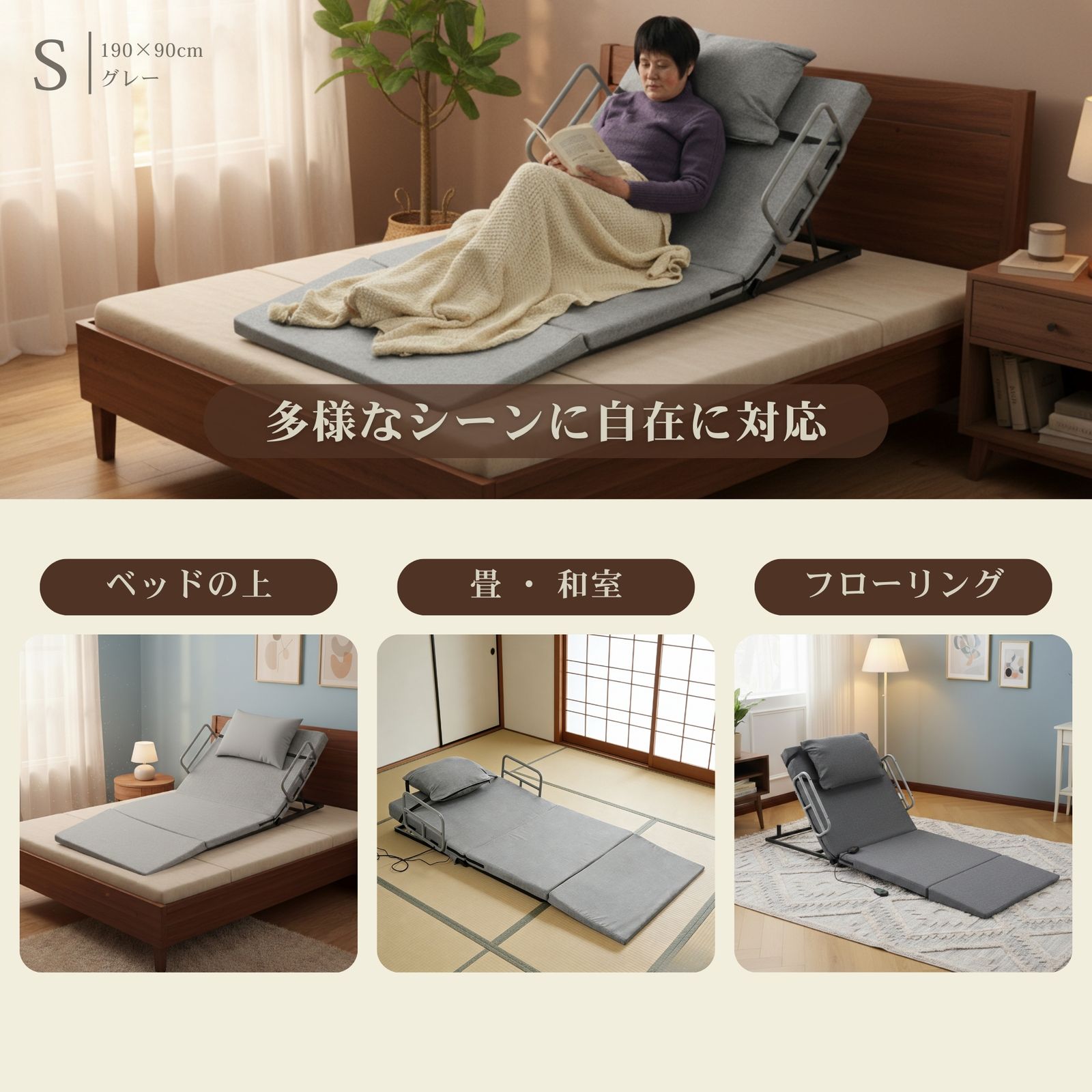 新入荷|電動マット S:190*90サイズ 電動リクライニングマット 電動ベッド 折りたたみベッド 電動 リクライニングベッド 2°~70°角度調整 ベッド シングル 無段階 家庭用 組立簡単 高さ調節 角度調整 【ベージュ】