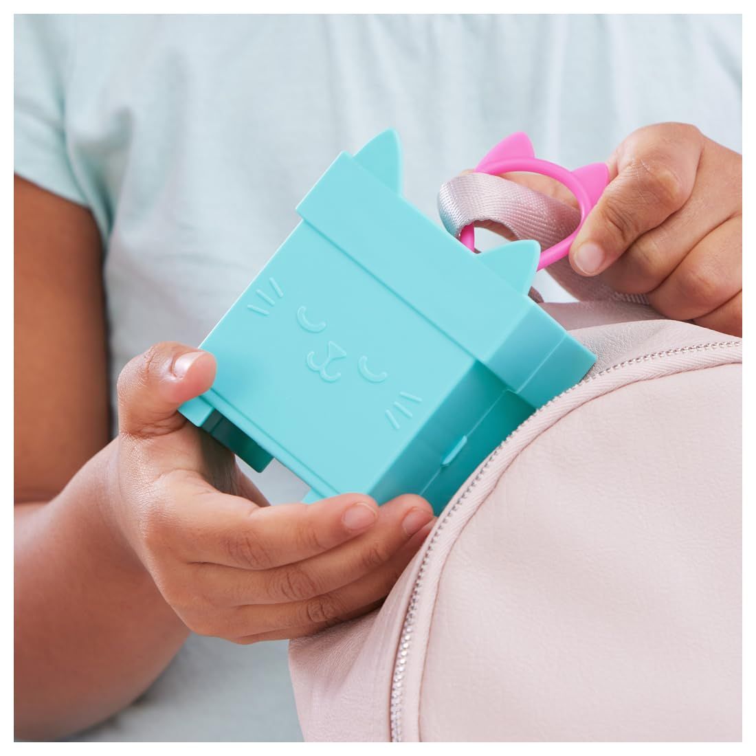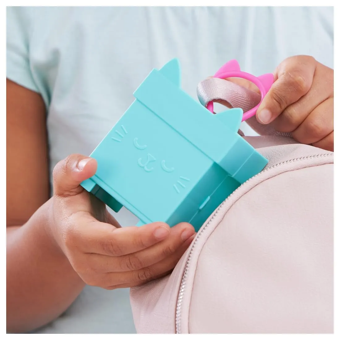 ・開くとお部屋になるハウスは、カラビナ付きでバッグなどに付けて持ち歩くことができます。