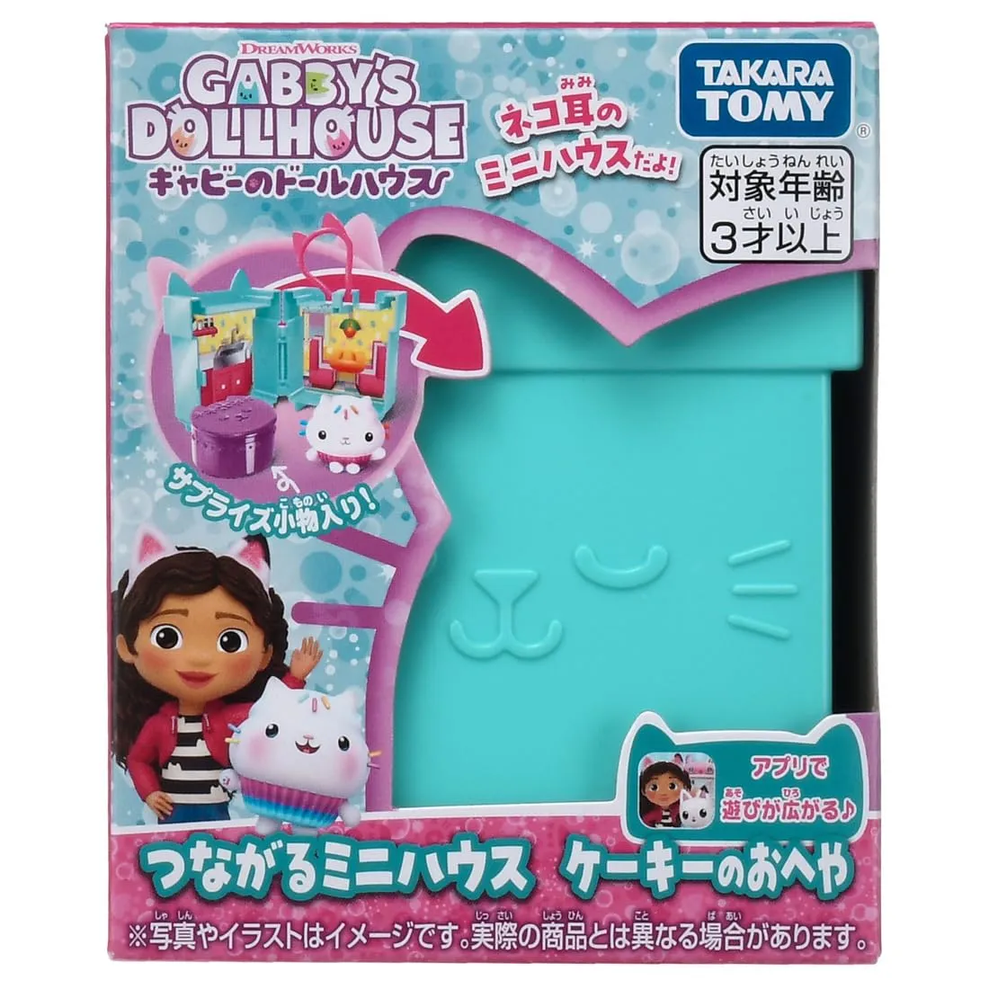 ・ネコちゃんボックスに付いているコードをスマホで読み取ると、無料のギャビーのドールハウスアプリで遊べる限定アイテムがゲットできます。