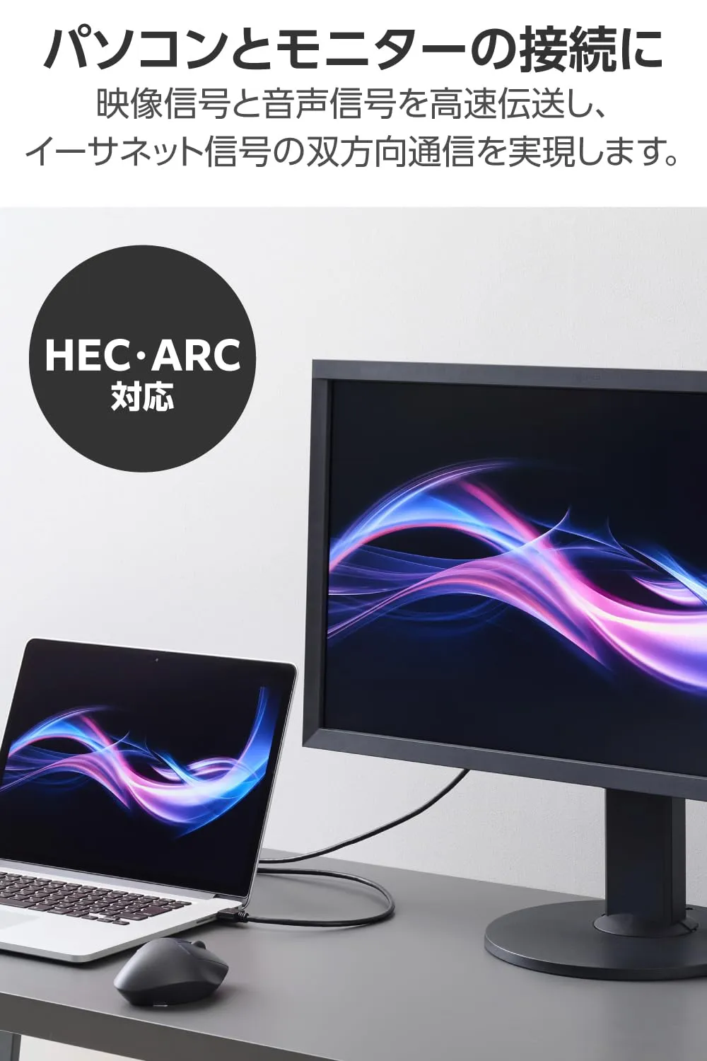 100Mbpsのイーサネット通信を実現する、HEC(HDMIイーサネットチャンネル)に対応しています。