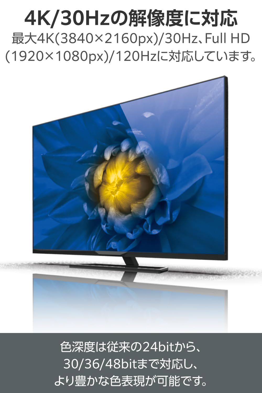 ■対応解像度:最大4K(3840×2160px)/30Hz、Full HD(1920×1080px)/120Hz