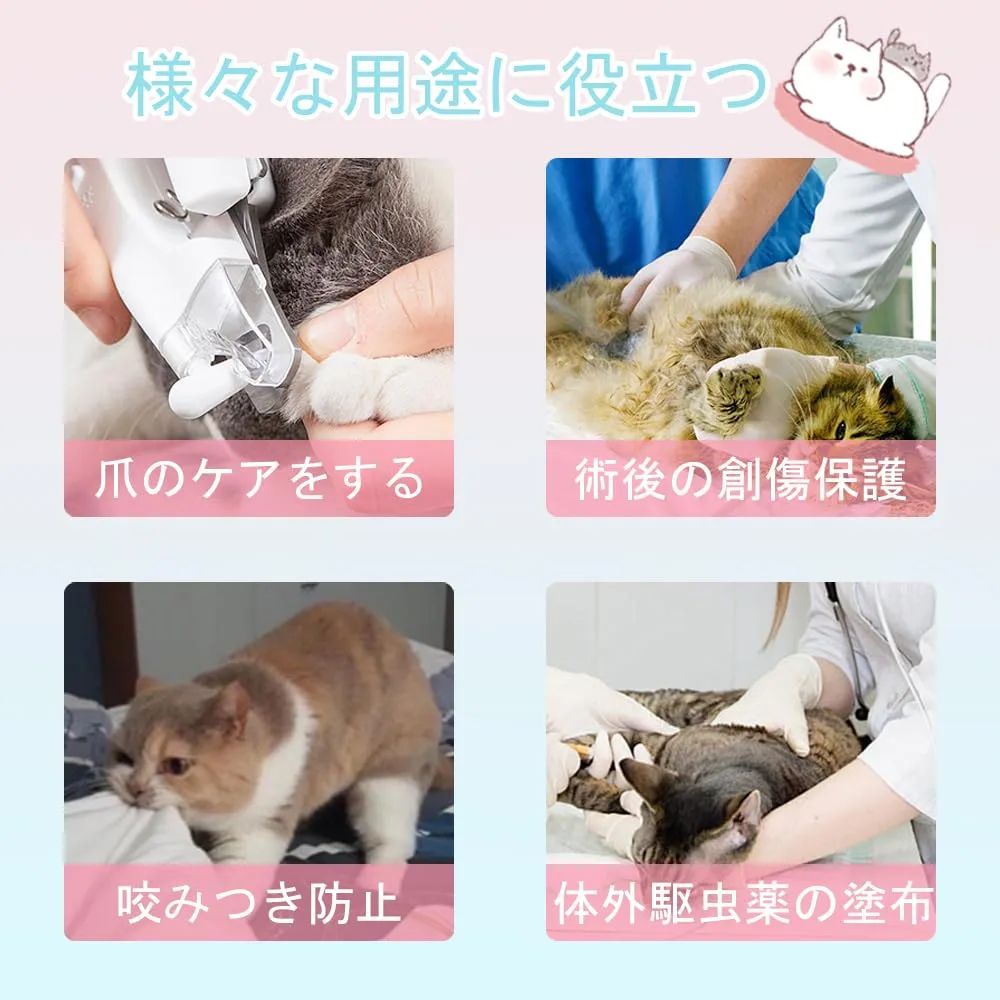 【多様な用途】手術後や皮膚の治療期間に最適で、傷口やかぶれを保護し、ペットが自ら噛んだり舐めたりするのを防ぎます。ケガ、皮膚疾患、美容や入浴時など、様々なシーンで大切なペットのケアに役立ちます。