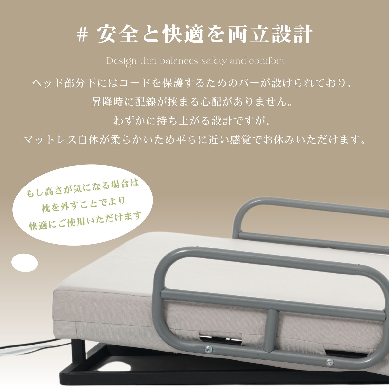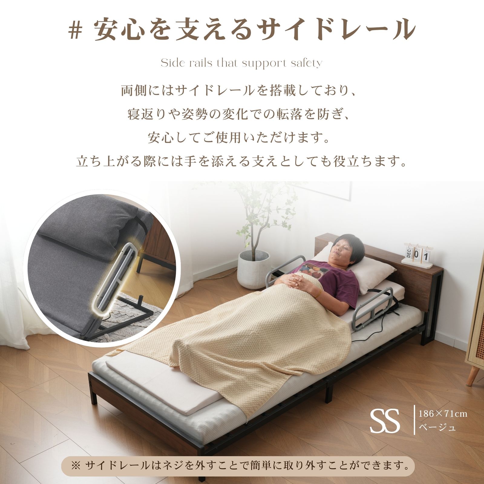 【手元で自由に操作できる快適さ】ベッドに横になったままでも、コントローラーが手元にあるので、背もたれや角度を自由に調節でき、快適な姿勢をいつでも簡単に整えられます。※ 手元スイッチのコード長さは約120cmです。