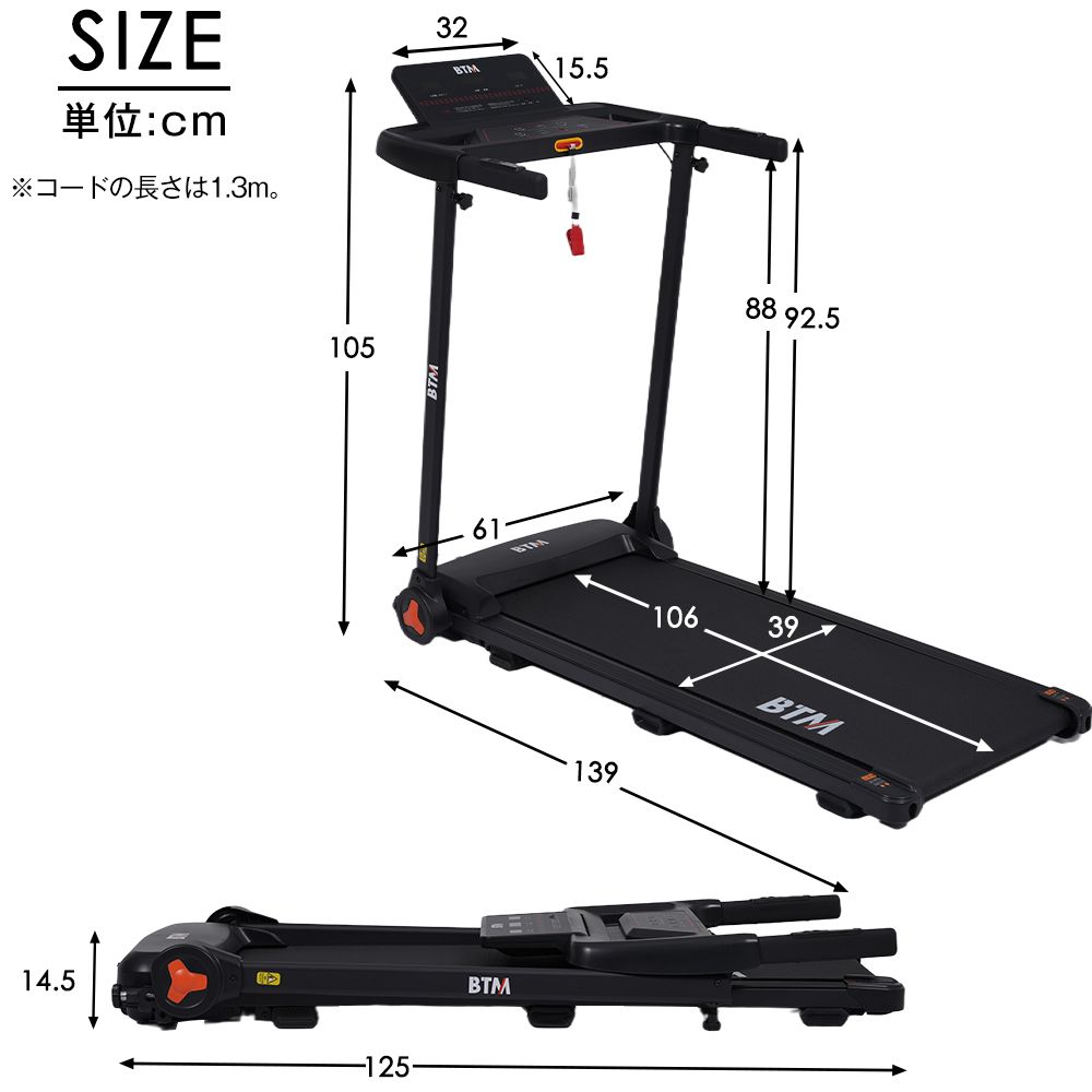 【時速1~14km】自分のペースに合わせてランニングしましょう。?日々のお散歩に ?本格な運動に?足腰強化に ?ダイエット?運動不足解消に ?筋力?持久カアップに時速1kmから0.1 km/ h刻みで調節できる。