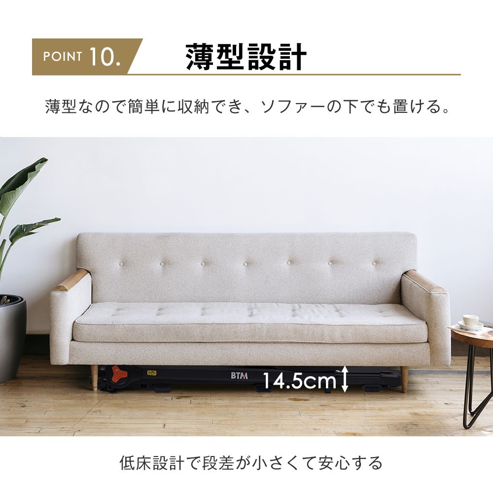 【薄型設計】薄型なので簡単に収納でき、ソファーの下でも置ける。