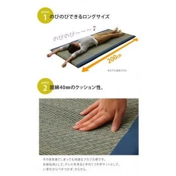 い草を使用したシンプルな格子柄のごろ寝フリーマットです。お仕事のちょっとした休憩時間の仮眠にも最適です。中材にはクッション性にこだわり固綿40mmを使用していますので程良い弾力性があり、フローリングでも快適にご使用頂けます。