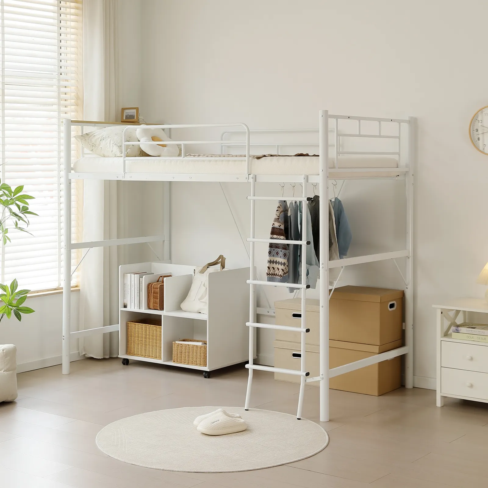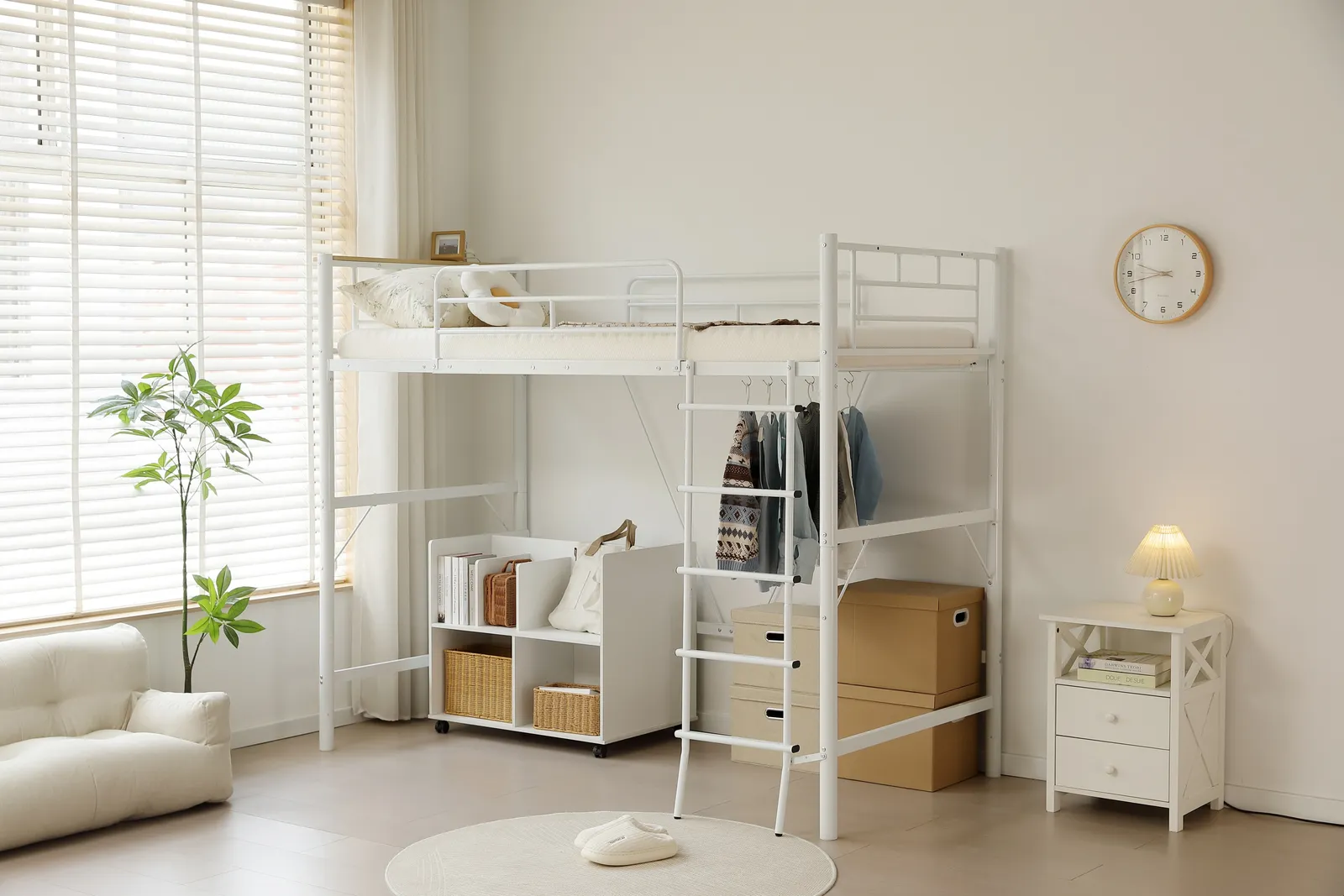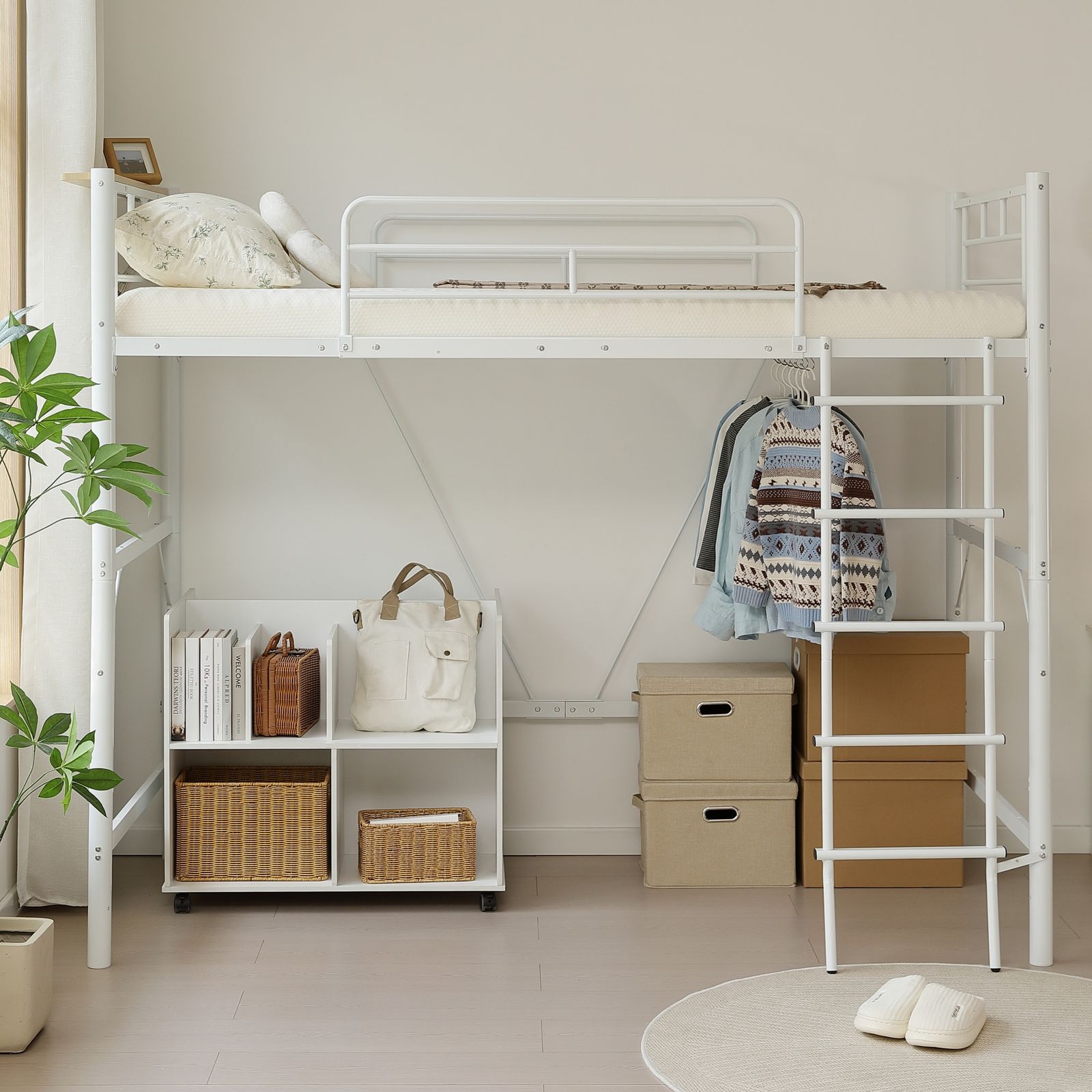 【広々としたベッド下空間】ハイタイプロフトベッドで、空間を無駄なく活かす。ベッド下はまるで「もうひとつの部屋」。省スペースながら、暮らしにフィットする自由な使い方が可能です。