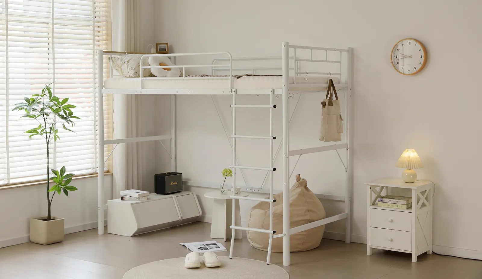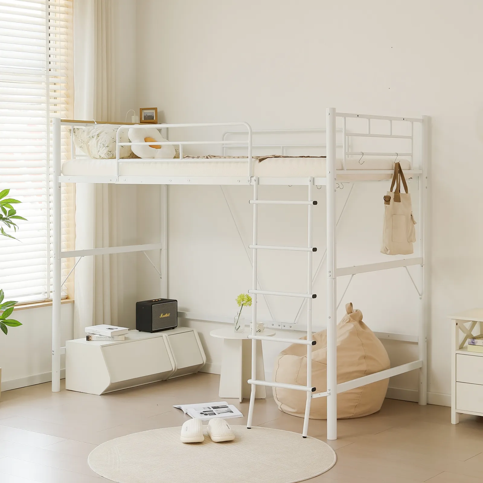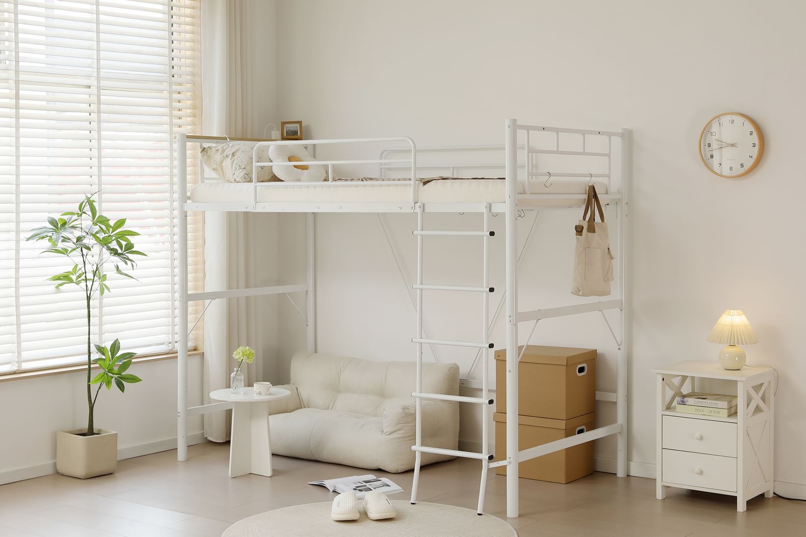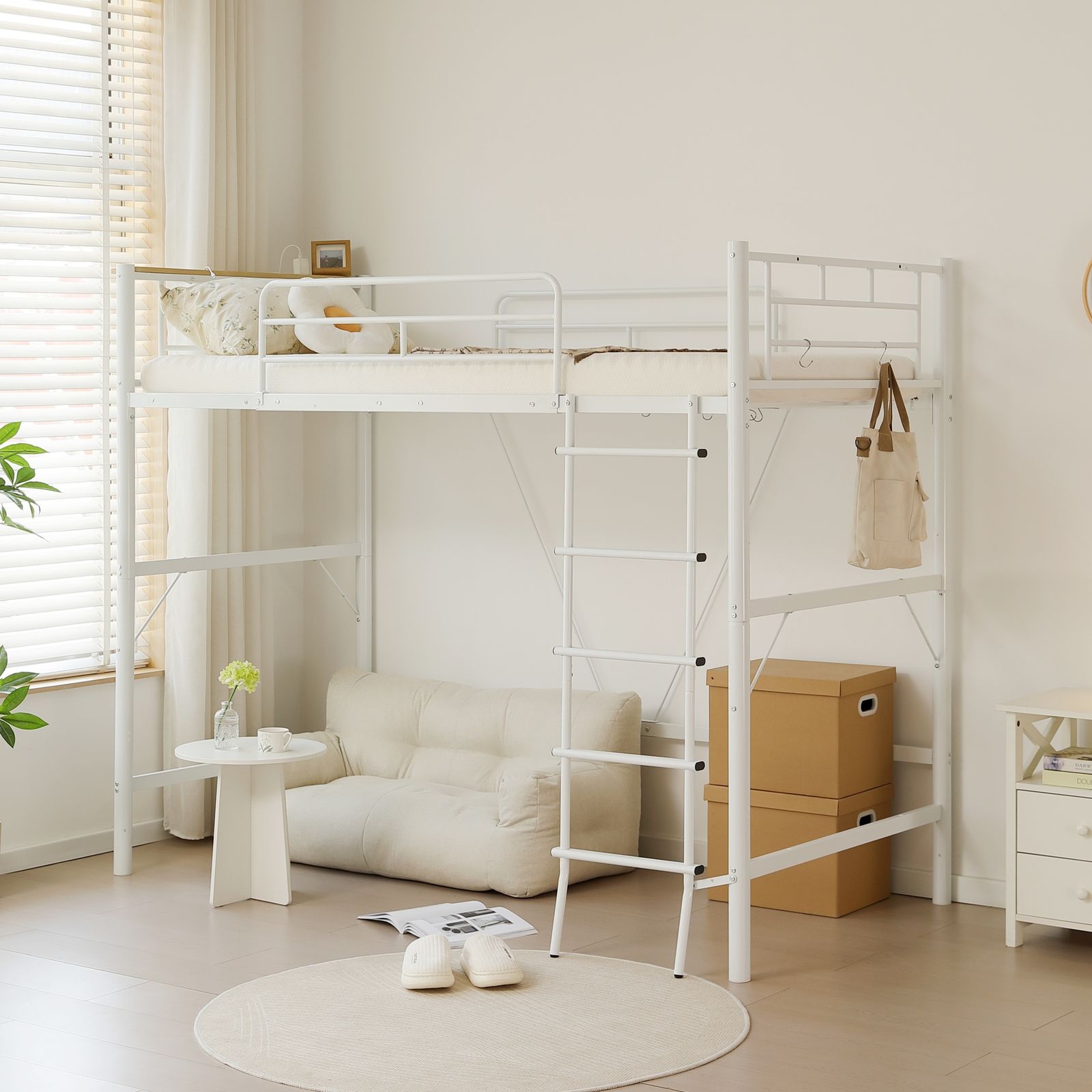 【省スペースのはしご】はしごはベッドと一体化しているため、シンプルでスマートな印象を与えるだけでなく、スペースを節約することができます。