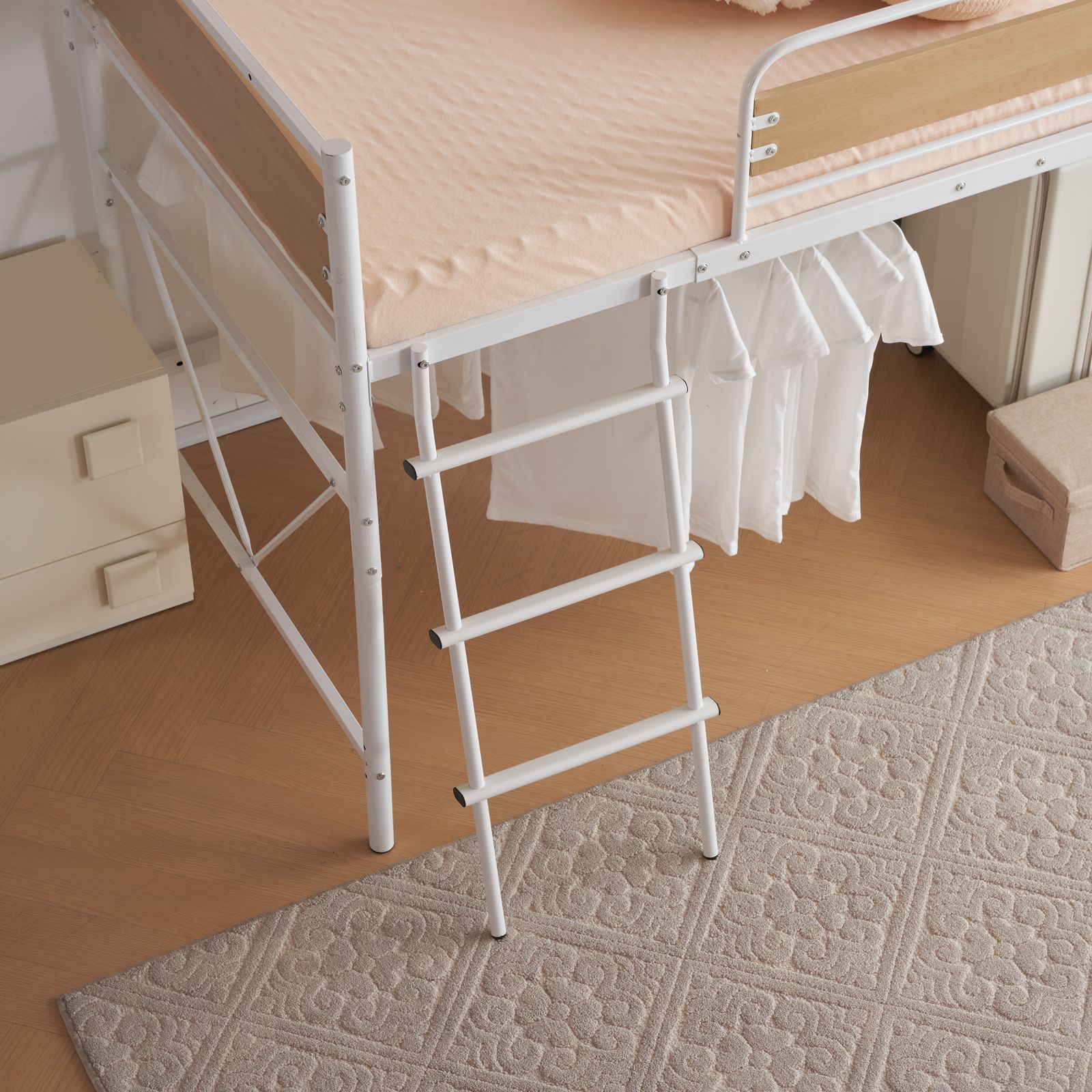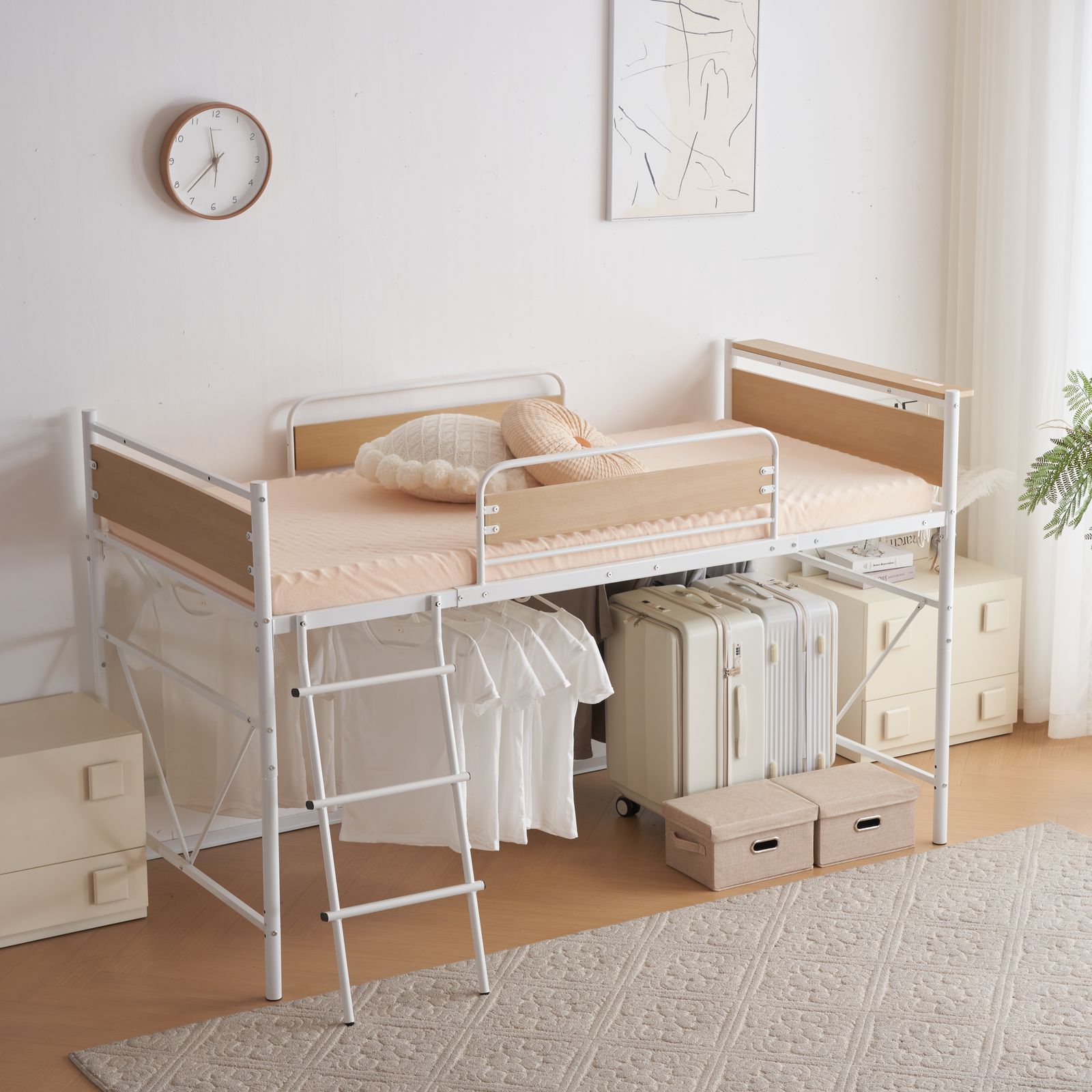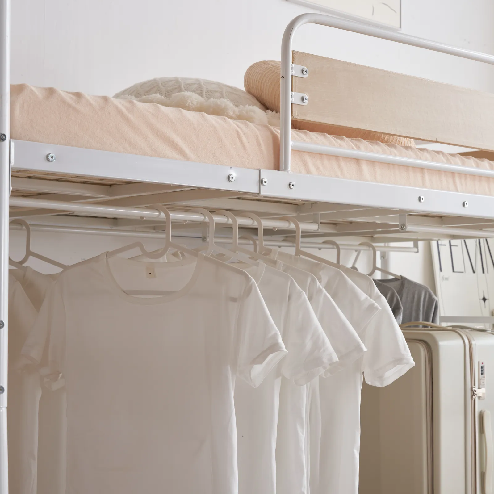 【ハンガーポール4本付き 】ハンガーポールは自由に付け外し可能、お好きな位置に設置して、ベッド下はクロゼットに! 洋服やバッグ、小物を掛けるのに大活躍。忙しい朝も素早く準備ができます。