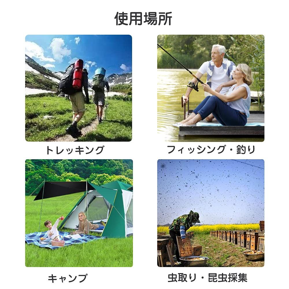 用途:蚊、ハエ、ハチなどの害虫からお肌を守る、つば広の虫よけネット付き帽子です。