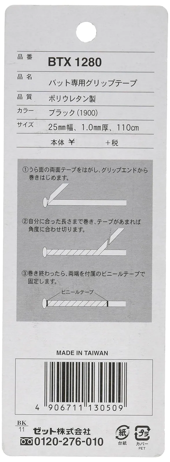 新品 ゼット(ZETT)野球 バット用 グリップテープ (ノンスリップ) ブラック BTX1280 (× 2)